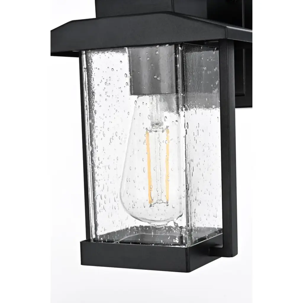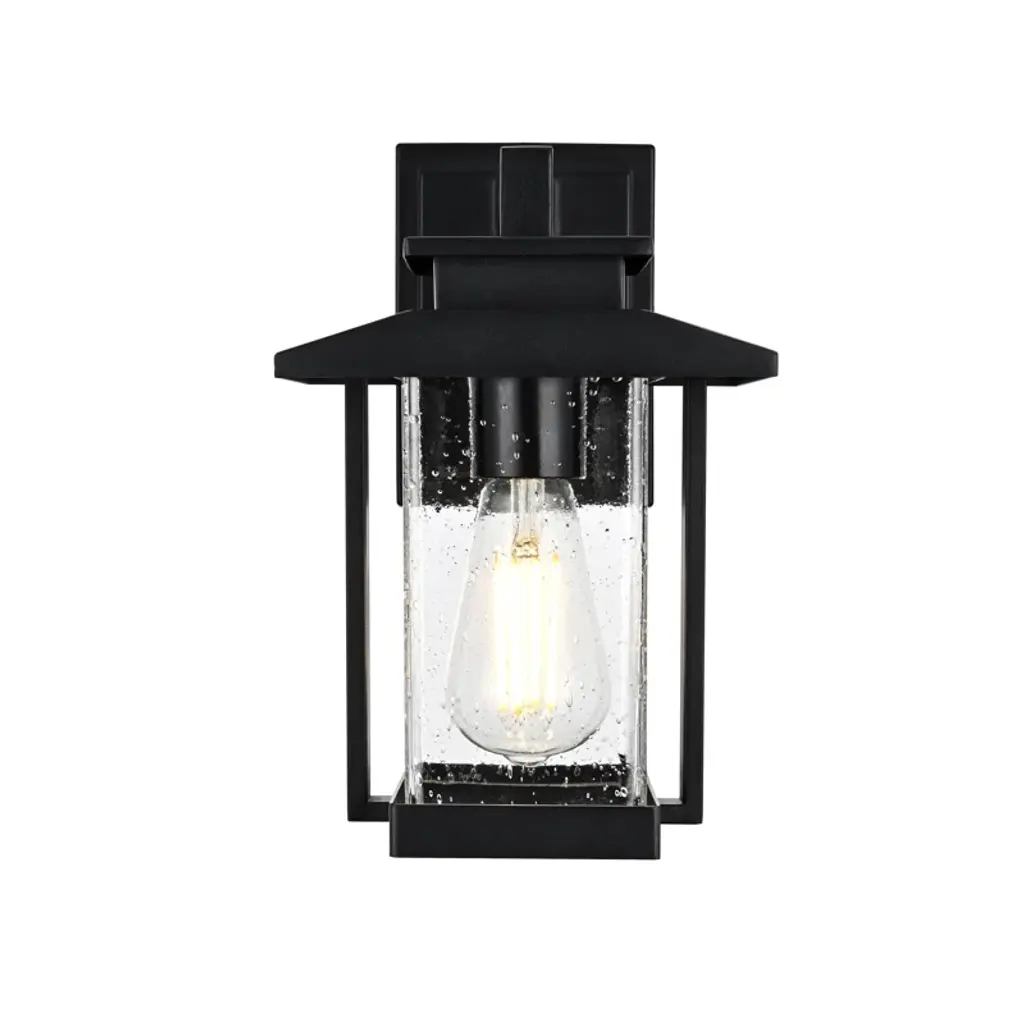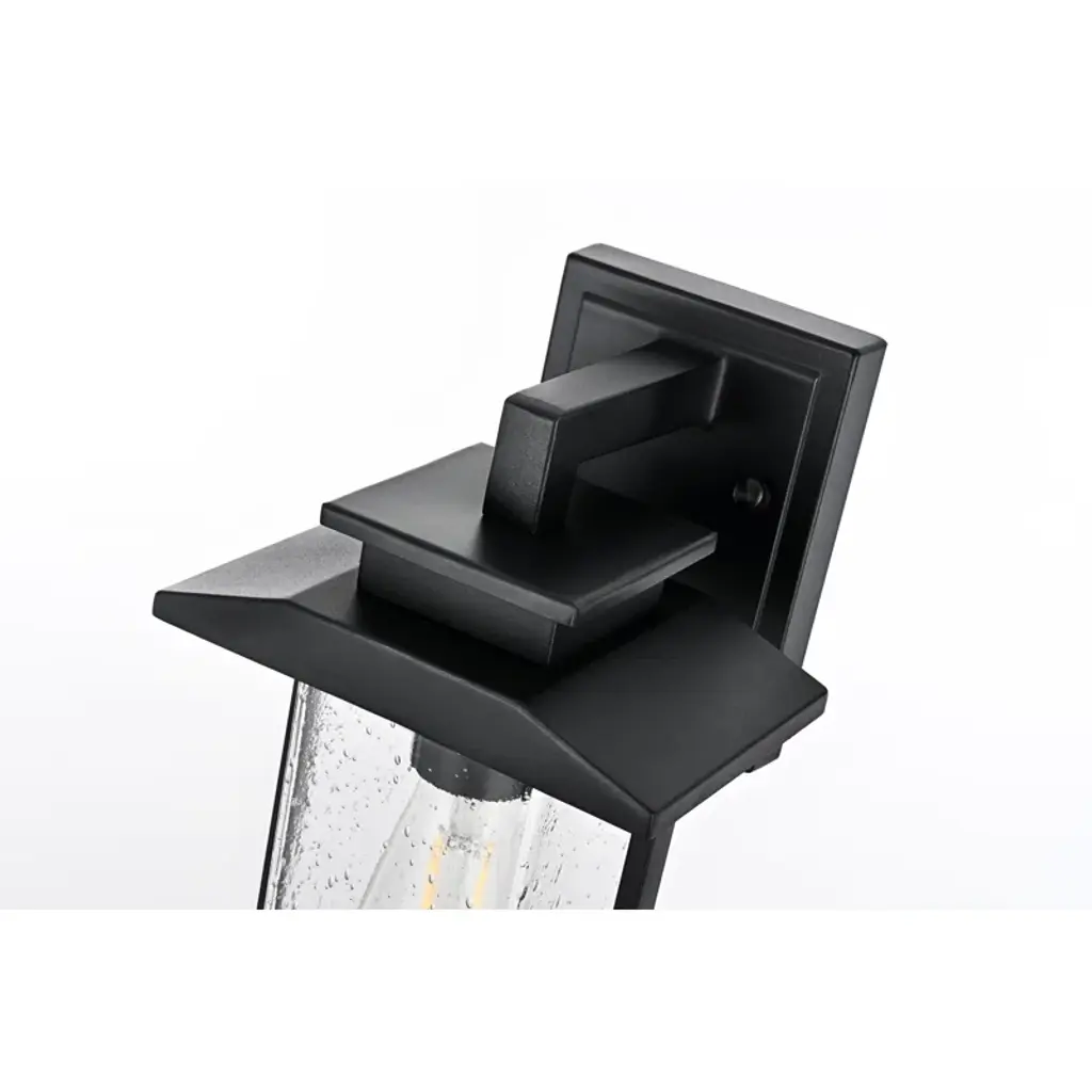 This outdoor wall sconce is an impressive blend of modern style and functionality, ideal for enhancing the ambiance of your home's exterior. Crafted from high-quality iron and complemented by textured glass, this sconce exudes a sense of timeless beauty that feels both sturdy and refined. Its crisp geometric lines and clean black finish give it a contemporary touch, while the seeded glass panel subtly diffuses the light, adding a charming glow that instantly elevates the atmosphere. Perfect for porches, patios, or garden paths, this sconce is designed to create a welcoming, radiant entrance for guests. With its straightforward design, it offers an effortlessly stylish way to brighten your outdoor space without overwhelming your existing decor.