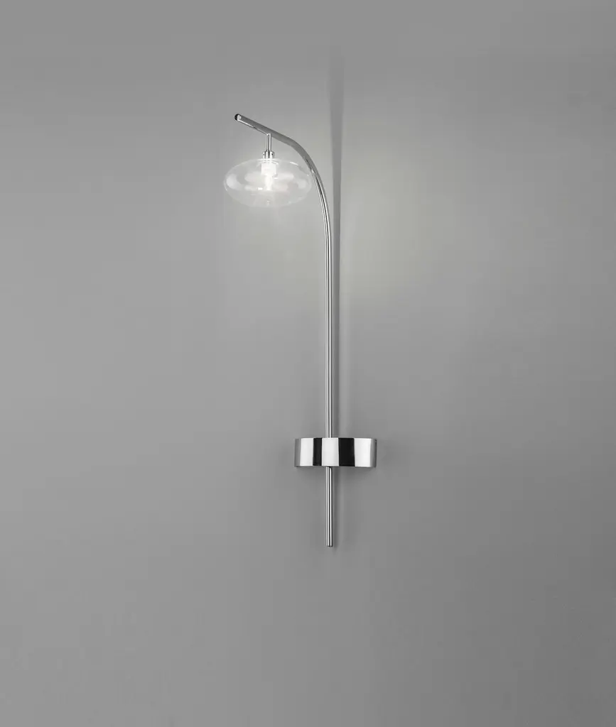 Modern Italian wall light with a clear glass shade mounted on chrome finish metal frame / Made in Italy by Fabio LtdHeight: 24 inches / Width: 6 inches / Depth: 12 inches 1 light / G9 type / max 25WOrder only / This item ships from ItalyOrder Reference #: FABIOLTD W795 CLEARThe listed price applies to chrome finish, matt gold finish available with upcharge of $100.