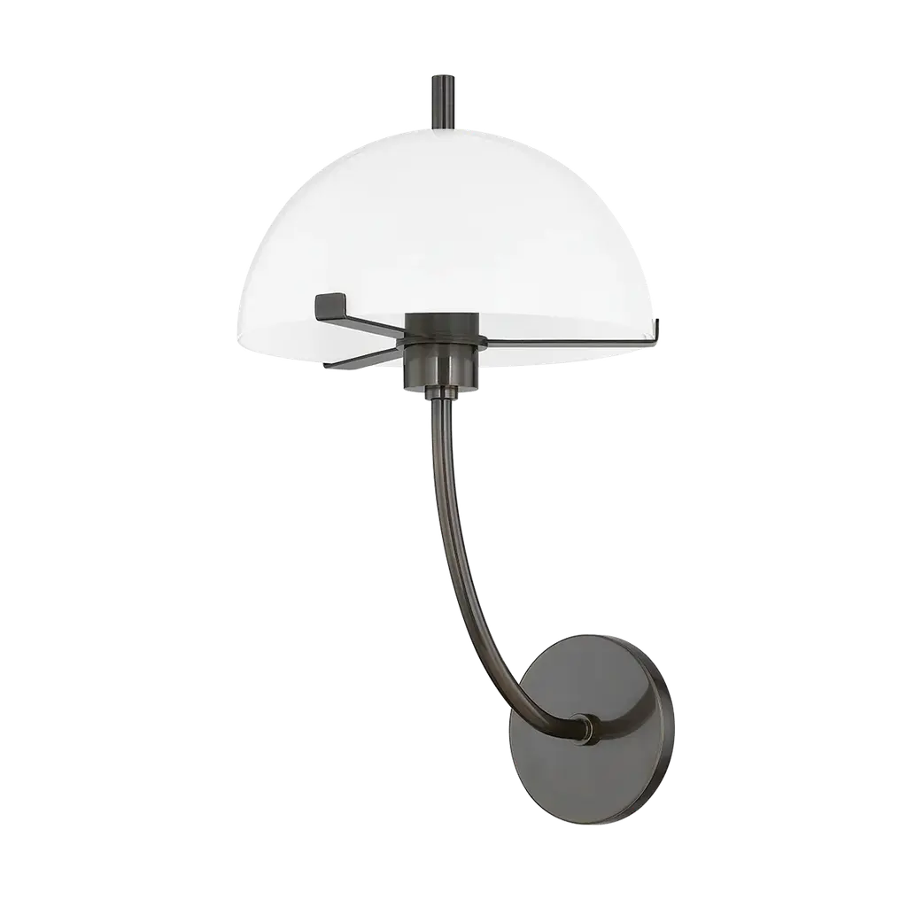 Collection: Admiral, Material: Steel, Finish Color: Matte Black/Brushed Nickel, Width: 6.5", Height: 15.38", Length: 6.63", Backplate Width: 5", Backplate Length: 5", Lamping Type: Incandescent, Number Of Bulbs: 1, Wattage: 60 Watts, Dimmable: Yes, Moisture Rating: Damp Rated, Desc: A modern collection with a twist, the Admiral 60-7901 one light wall sconce features a dual finish, unique design, and a fashionable statement for home luminaires. A suspended tear-dropped shape is comprised of matte black with natural brass elements encompassing the fixture. The white opal glass orb shields the light source for smooth, even lighting to bring a warm glow to any space. A beautiful design that is versatile and will compliment a variety of home decors. Accepts one 60 watt A19 medium base bulb or LED equivalent / Steel Construction / White Opal Glass / Matte Black Finish / Damp Location Rated / 1 Year Warranty / Instructions and mounting hardware included for easy installation / Experience t