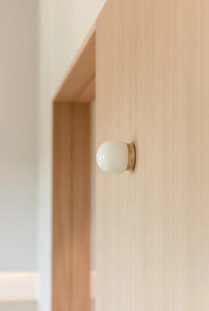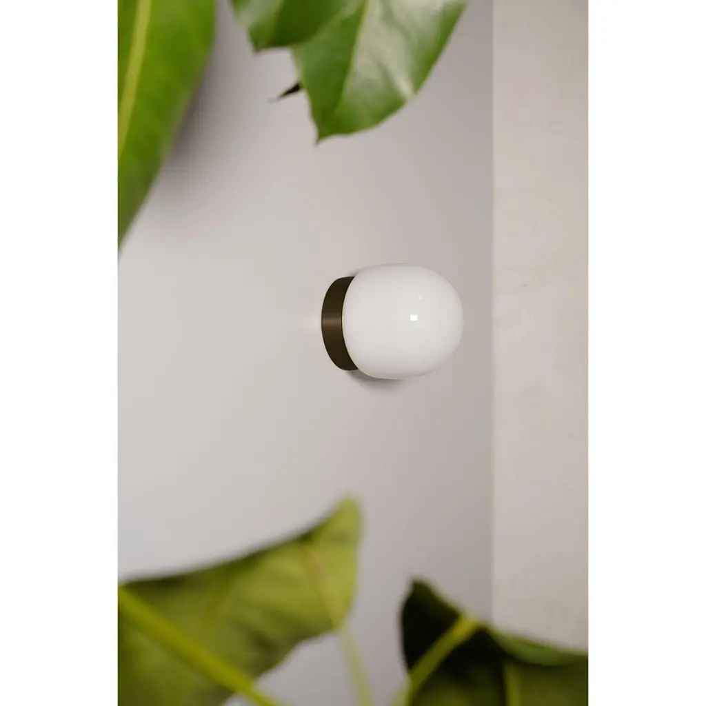 Nuvol simple wall light by Contain.Dimensions: D 10 x H 11 cm Materials: brass structure and opal glass.Available in different finishes. All our lamps can be wired according to each country. If sold to the USA it will be wired for the USA for instance.“You are where you live” So, we decided to live in Mallorca. We are Mauricio Obarrio and Juan Peralta and CONTAIN is our lighting and furniture design studio.This collection is the result of the collaboration between our studio, local artisans and the industrial sector; where creativity and simplicity creates a unique synergy and generates a narrative between the materials used and the pieces created. Our mission is to deliver artisan crafted, highly engineered, sophisticated yet simple lighting design solutions. Our studio's inspiration is fueled by an obsession with natural materials such as Brass, Glass, and Hardwoods along with a love for artisan craftsmanship.
