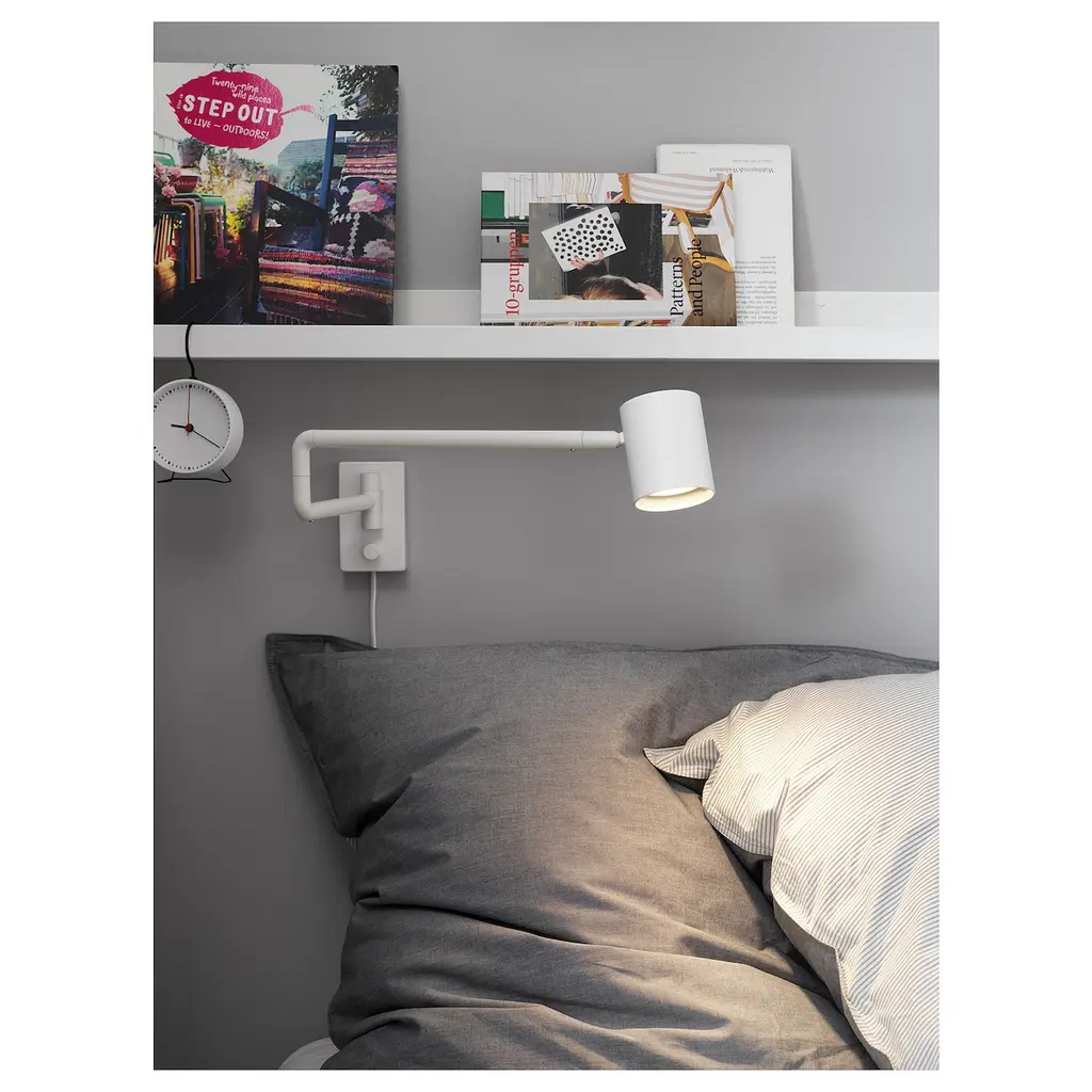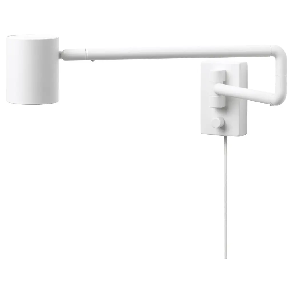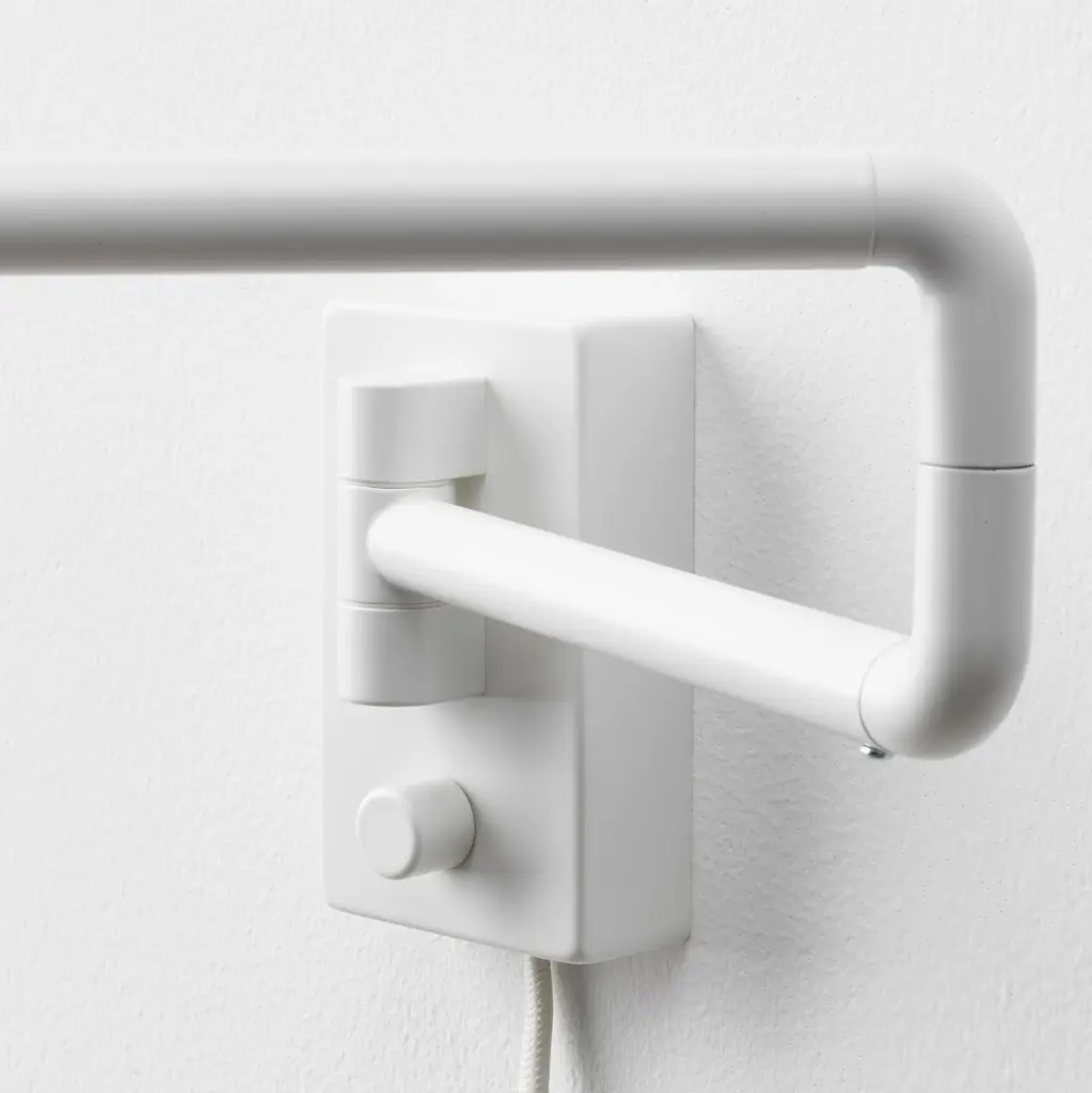 NYMÅNE Wall lamp with swing arm - white. As the light can be dimmed, you are able to choose lighting suitable for every occasion. Provides a directed light that is great for reading. You can easily direct the light where you want it because the lamp arm and head are adjustable.