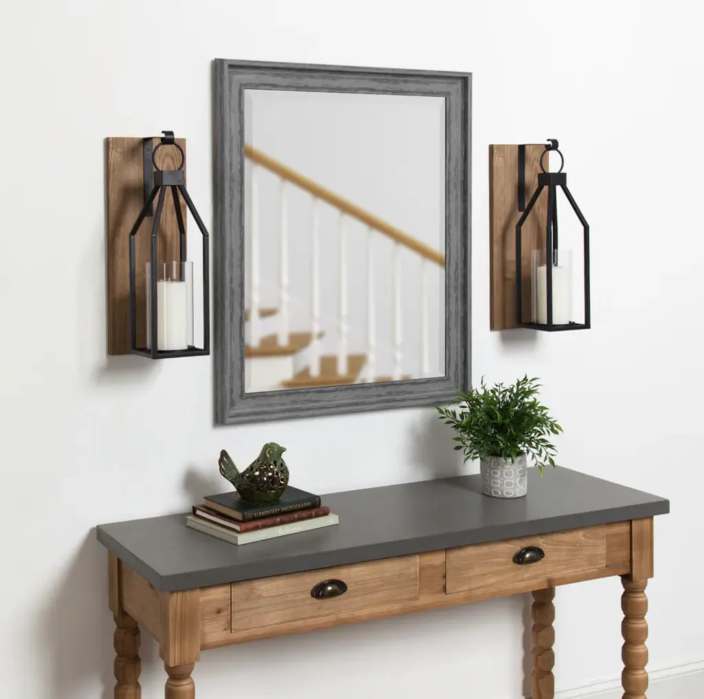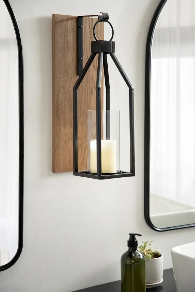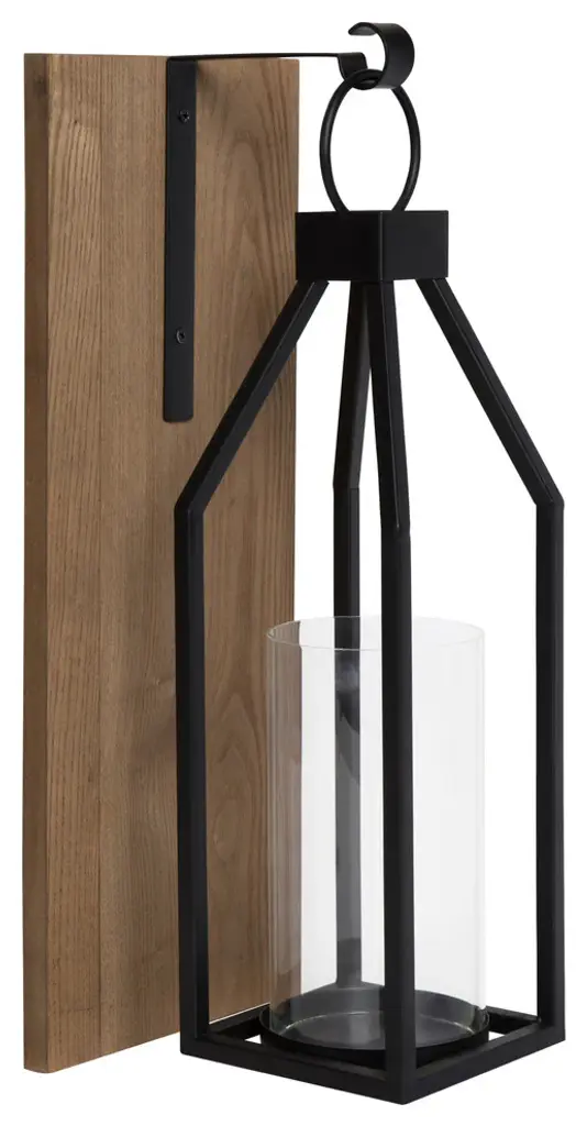 Bring enchantment and warmth into your home with the drama of the kate and laurel - oakly wall sconce candle holder. The clean lines of the design feature a glass cylinder with a black metal candle holder that is secured to a rustic wood plaque. It''s a transitional style that will look great with your home decor. It fastens flat against a wall using two bolts or nails (not included) through the installed recessed keyhole hangers. The black metal frame is 18 inches high, and the weatherboard back panel is 18.75 x 7 inches. We recommend a 3 or 3.5-inch diameter, round candle to use on the 4-inch wide candle holder base. The included glass pillar stands 7.5 inches high and sits entirely within the base and over a candle. The classic silhouette and traditional finish make the oakly wall sconce a sophisticated wall accent for an entryway, hallway or dining room. Use two sconces, one on each side of a bed, to create a simply elegant bedroom haven or delight in the comfort of natural candlelight after you''ve decorated your favorite bathroom with the warmth this sconce brings. This compact piece is perfect for an ambiance-enhancing candlelight look anywhere in your home.Sophisticated wall sconce: the kate and laurel - oakly wall sconce is elegantly crafted of a sturdy black metal frame that is secured to a rustic brown wooden plaque. A lovely glass pillar fits perfectly on the metal base. The overall dimensions are 18.75 x 7 inches. It can hold a candle that is up to 3.5 inches in diameter.Easy installation: hang this lovely wall sconce candle holder and add an elegant warmth to any room. The frame has two recessed key-hole hangers installed on the back which makes for easy installation using two nails or bolts (not included).Classic, transitional style: the oakly wall sconce is the best of a transitional style. The smart, clean-lined design gives it a classic feel, and the metallic finish enhances its modern allure.Crafted metal: the metal sconce is designed with style and strength in mind. By using a durable but lightweight iron metal, it not only looks beautiful but can also hold up to the test of time in craftsmanship and construction.A wonderful gift: the open traditional design promises to add a bit of romance to any wall and makes for a very thoughtful gift for a friend or yourself.