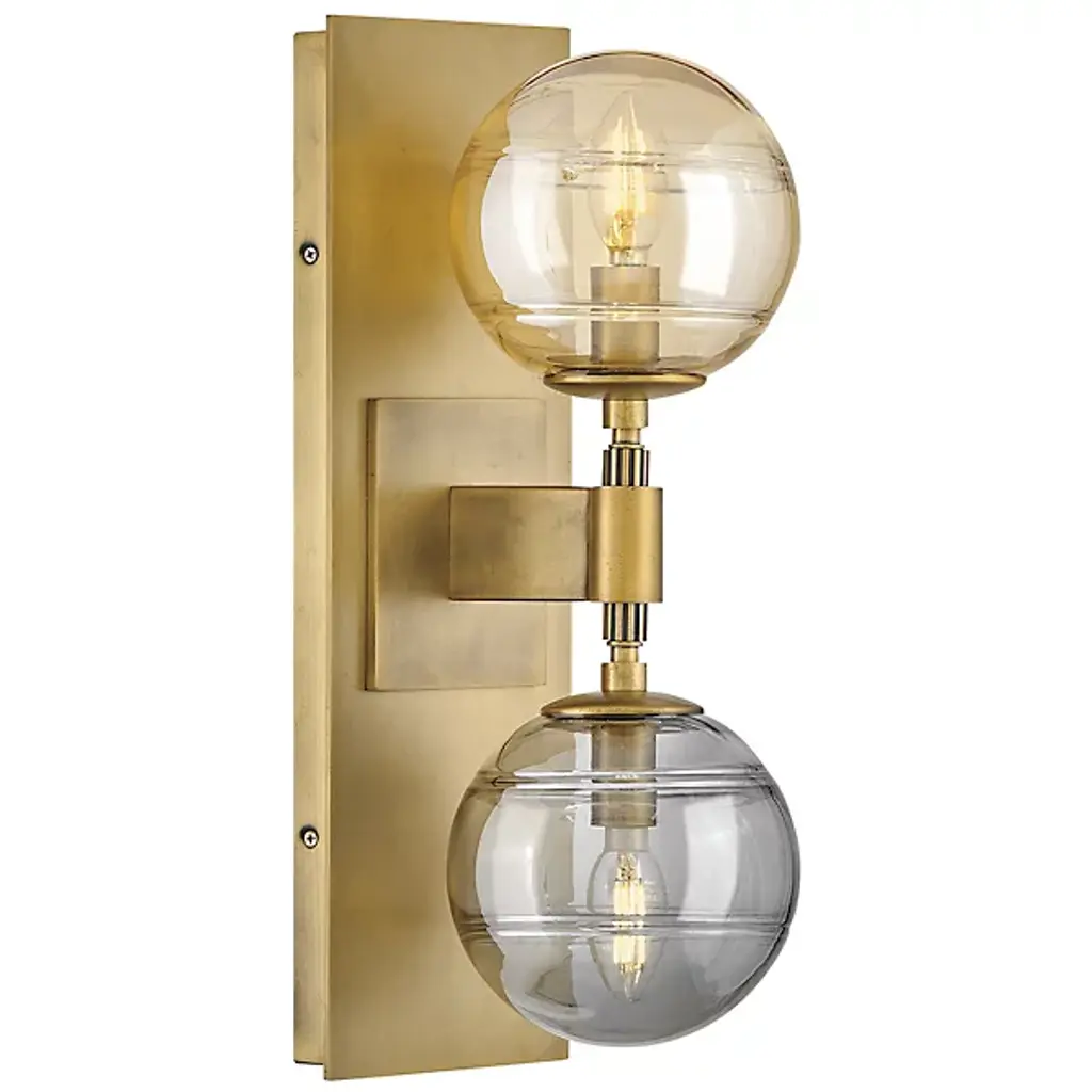 The Oberon Wall Sconce from Fredrick Ramond artfully combines unexpected materials to create a tailored, transitional silhouette. Its ribbed stems add texture and visual interest, while delicate swirls detail the spherical shades crafted from multicolored glass. This unique combination of elements adds a touch of sophistication and intrigue to any space, making the Oberon Wall Sconce the perfect choice for those seeking a blend of modern and traditional aesthetics in their lighting fixtures.