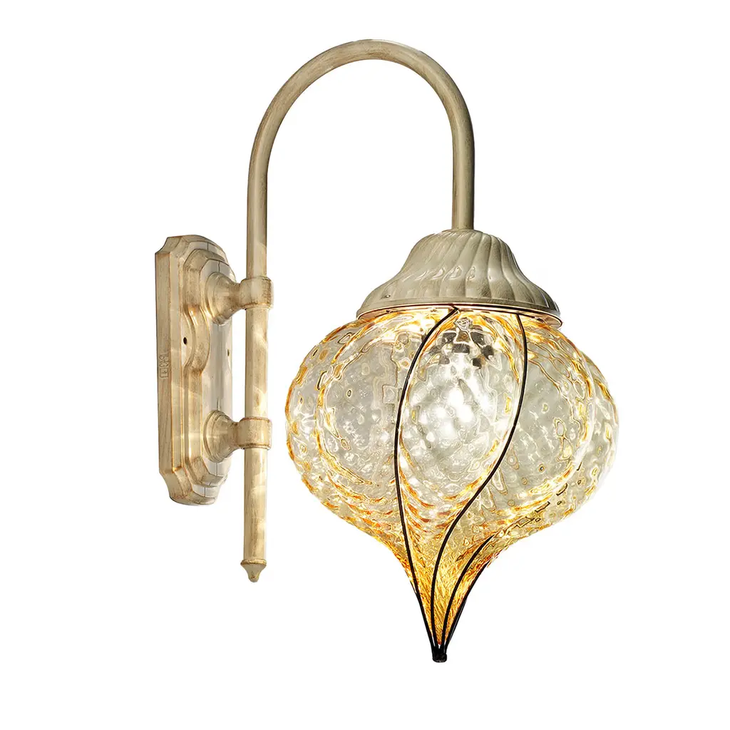 A synthesis of classic references and modern inspiration, this sconce flaunts a prized diffuser in clear Murano glass playfully inspired by beehives in its silhouette caged in a neat stainless steel frame. Due to handcrafting, slight changes in metal's finish may occur.