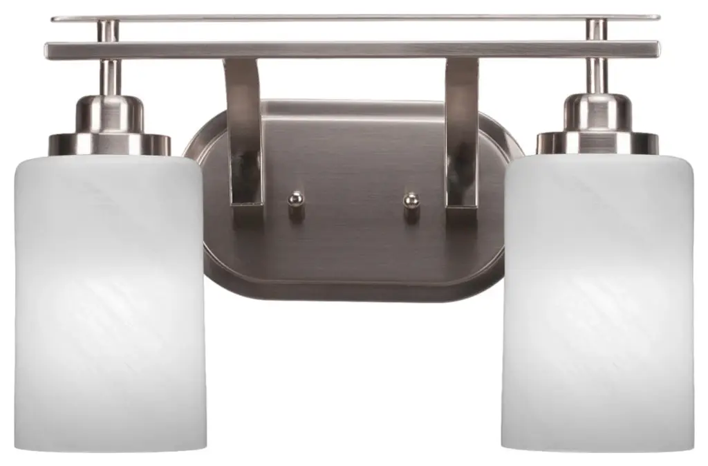 Odyssey 2 Light Bath Bar In Brushed Nickel Finish With 4" White Marble Glass