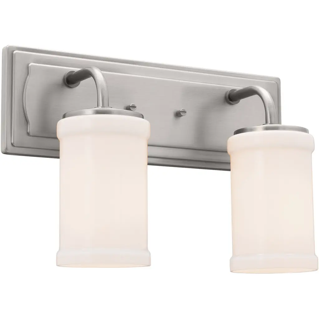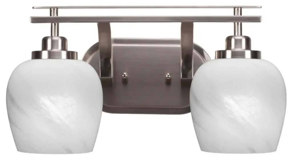 Odyssey 2 Light Bath Bar In Brushed Nickel Finish With 6" White Marble Glass