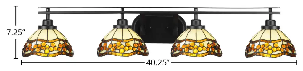 Elevate your space with the elegant Odyssey 4-Light Bath Bar. Installation is a breeze - simply connect it to a 120 volt power supply and enjoy. Achieve the perfect ambiance with its dimmable lighting feature (dimmer not included). This energy-efficient light is LED compatible, adding convenience to your lighting choices. Suitable for use with standard medium base bulbs, enjoy easy and seamless set up. Cleaning is a breeze, just use a damp cloth as no chemicals are needed. With its streamlined hardwired design, rest assured that this product is made to last. It''s suitable for damp locations and boasts a durable glass shade that ensures even light diffusion. Explore the range of finish, color, and glass size options to find the perfect match for your space.Features:• Easy to install and use with 120 Volt power supply• Create the perfect ambiance with dimmable lighting (dimmer not included)• Energy-efficient and LED compatible for long-lasting illumination• Versatile lighting options with compatibility for standard medium base bulbs• Easily maintain cleanliness with a damp cloth, no chemicals required• Streamlined installation and seamless integration with hardwired design• Safely rated for damp location useGeneral Information:• Dimmable: Yes• Dimensions:Bath Bar Light• Assembled Product: 40.25 inches wide x 8.75 inches deep x 7.25 inches high• Shade Width: 7 inchesRequirements:• Bulb Type: LED Bulb, Incandescent• For over 40 years, Toltec Lighting has been dedicated to creating extraordinary lighting experiences for our customers. Our extensive online catalogue showcases a diverse range of contemporary and timeless collections, offering over 40 glass shade choices to personalize each fixture to your unique taste. Whether you seek traditional, transitional, or contemporary styles, our fixtures effortlessly complement any decor. With an unwavering commitment to quality, value, and exceptional service, we prioritize your satisfaction by ensuring hassle-free transactions. Toltec Lighting stands proudly as a beacon of reliability and brilliance, and we look forward to illuminating your home for years to come.