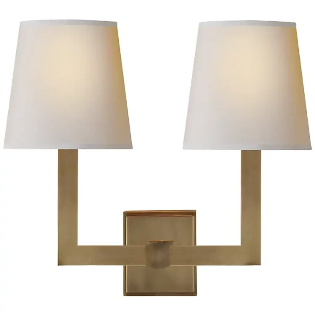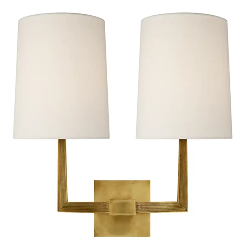 Like the coastal central California town of the same name, it’s beautiful and understated yet has a slight edge. The Ojai Double Wall Sconce from Visual Comfort Signature, formerly known as Visual Comfort, punches above its size in the lighting and aesthetic department. The sconce’s balance of form and function makes it ideal in the contemporary setting. It finds a place even with tight wall space constraints thanks to a compact square backplate. The angular arms in front invite a closer look as they produce a linear pattern texture. Drum shades top the metal hardware with a floating visual effect. The bulbs inside filter through a comfortable aura without glare.
