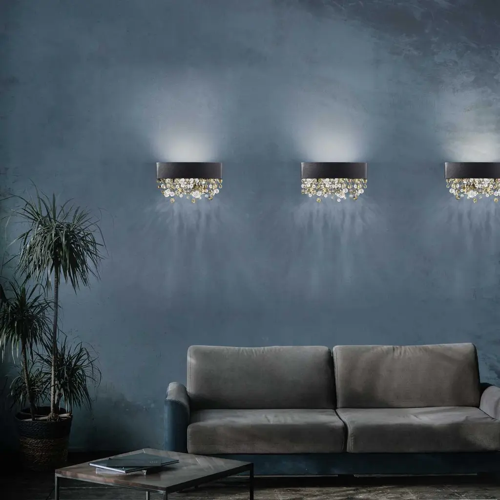 Indulge in the luxurious design of the Ola Wall Sconce from Masiero. A striking juxtaposition of metal and glass, this contemporary piece exudes elegance and sophistication. The cascading colored crystals and sleek frame create a mesmerizing effect, making it a perfect addition to any hallway, dining room, or walk-in closet. Elevate your home decor with this exquisite wall sconce. Highlights