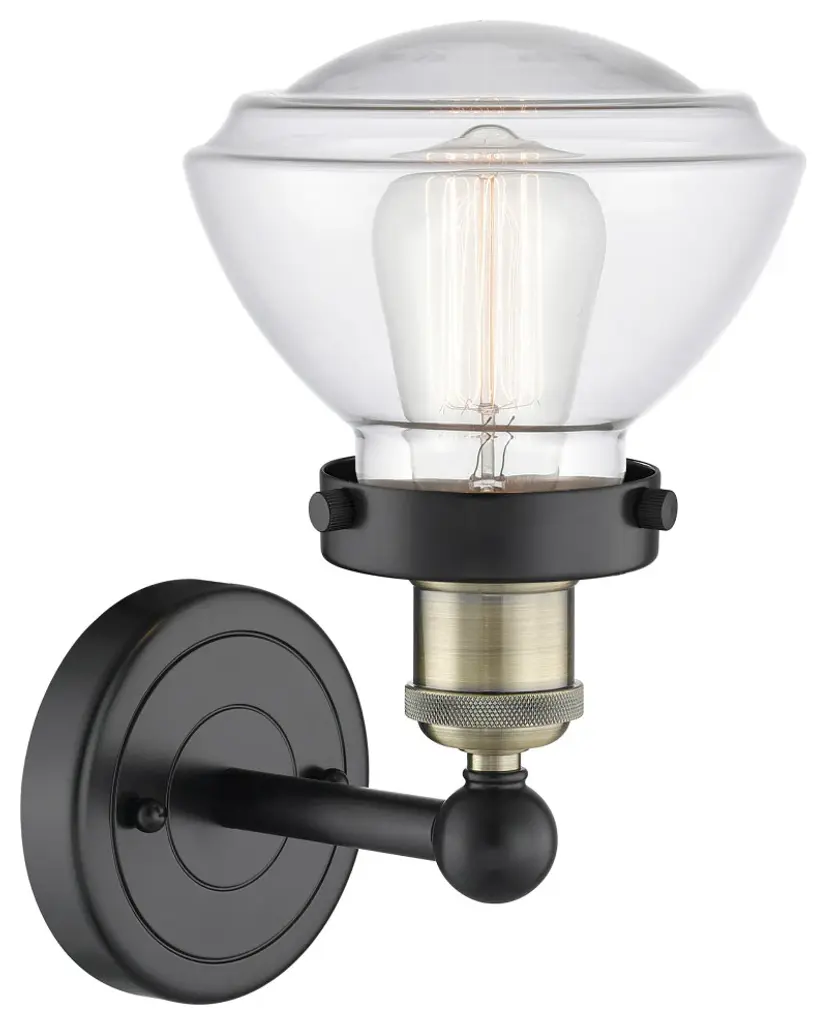 Olean 1-Light 7" Sconce, Black Antique Brass Finish, Clear Shade