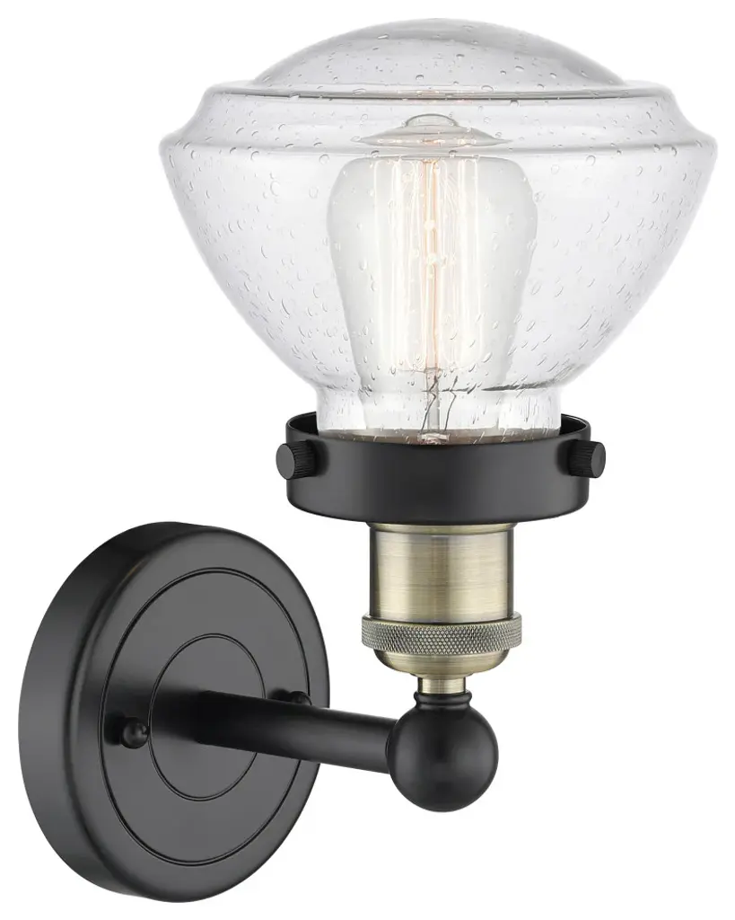 Olean 1-Light 7" Sconce, Black Antique Brass Finish, Mercury Shade