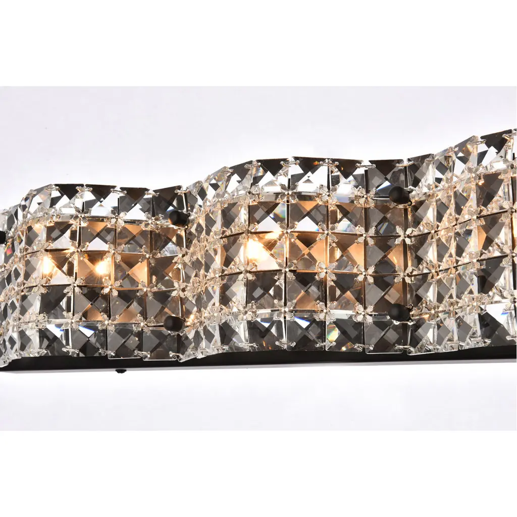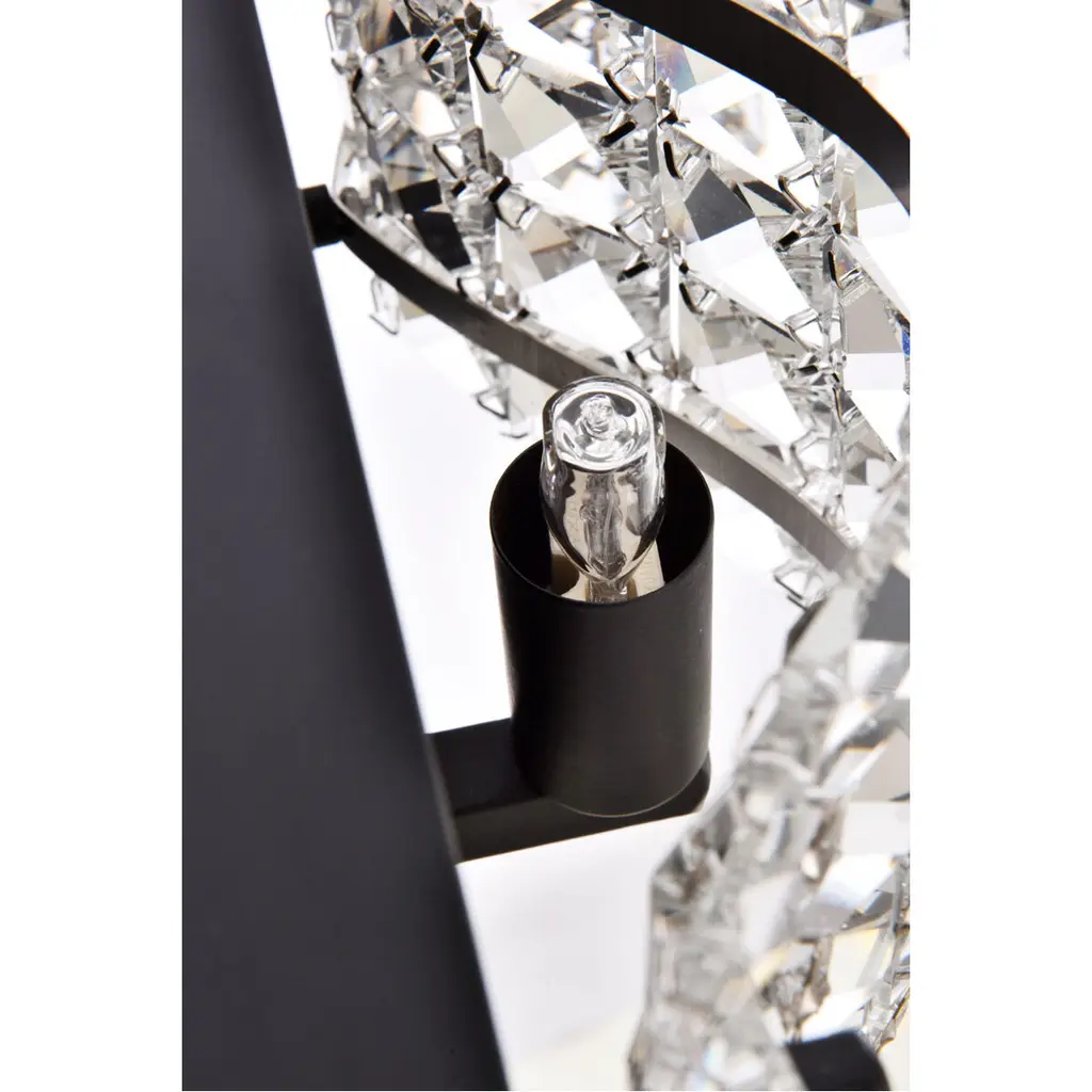 The Ollie Collection of wall lamps is a testament to the timeless beauty of crystals and lights. The gentle undulating clear crystal veil masks the coy lights that allows its lights to shine from within. The illumination creates a brilliant yet subtle glamour, and provides an ambience of alluring beauty. Available in a black finish, this wall lamp can adorn any room in need of radiant elegance (light bulbs not included).