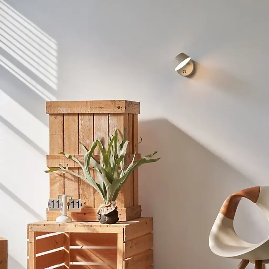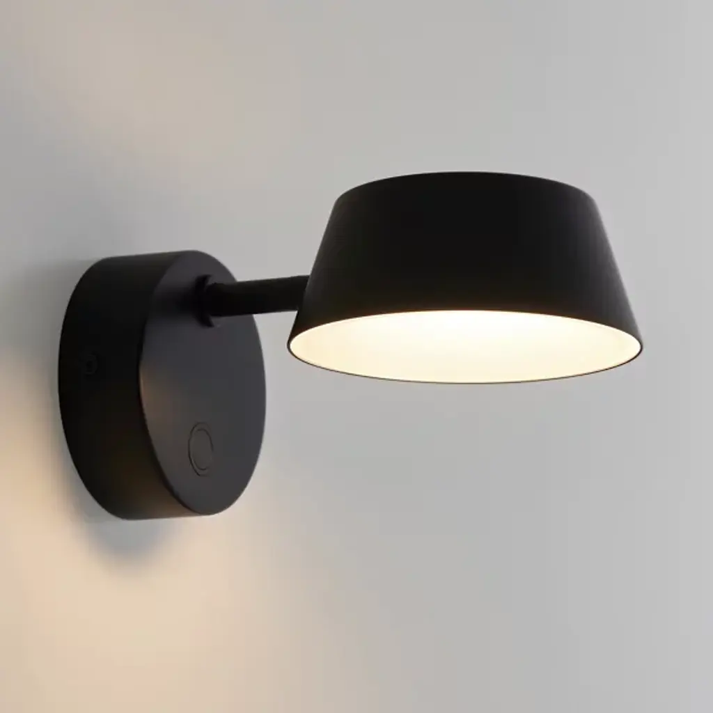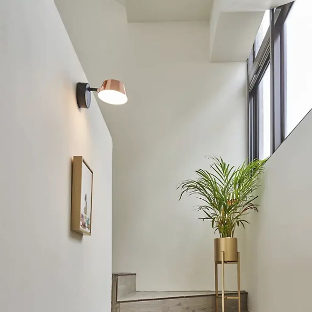 Clean lines and functional design make the Olo LED Wall Sconce by Seed Design prime addition to just about any space in the home. A circular wall mount secures the piece and sends a brief arm to a tapered metal shade. Its interior is entirely comprised of a frosted diffuser, creating a vibrant glow that travels downward and up through an open top. A simple touch controls the fixture’s light intensity, while an adjustable head ensures the perfect lighting solution for the space.