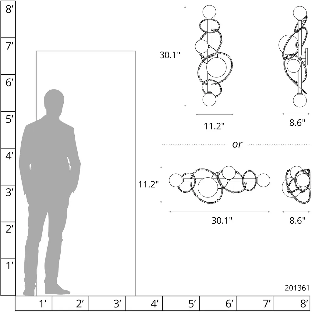 Who says bathtime can't be fun? The Olympus 4-Light Bath Sconce's rings playfully interact with the varied glass globes and its steel tube base. Globes offer functional lighting required for bath environments. The wall sconce can be mounted either vertically or horizontally. Hand-forged rings are hammered and stamped, making the craft of the artisan evident. Available in Black, Oil Rubbed Bronze, Vintage Platinum, Soft Gold, Sterling and Modern Brass.