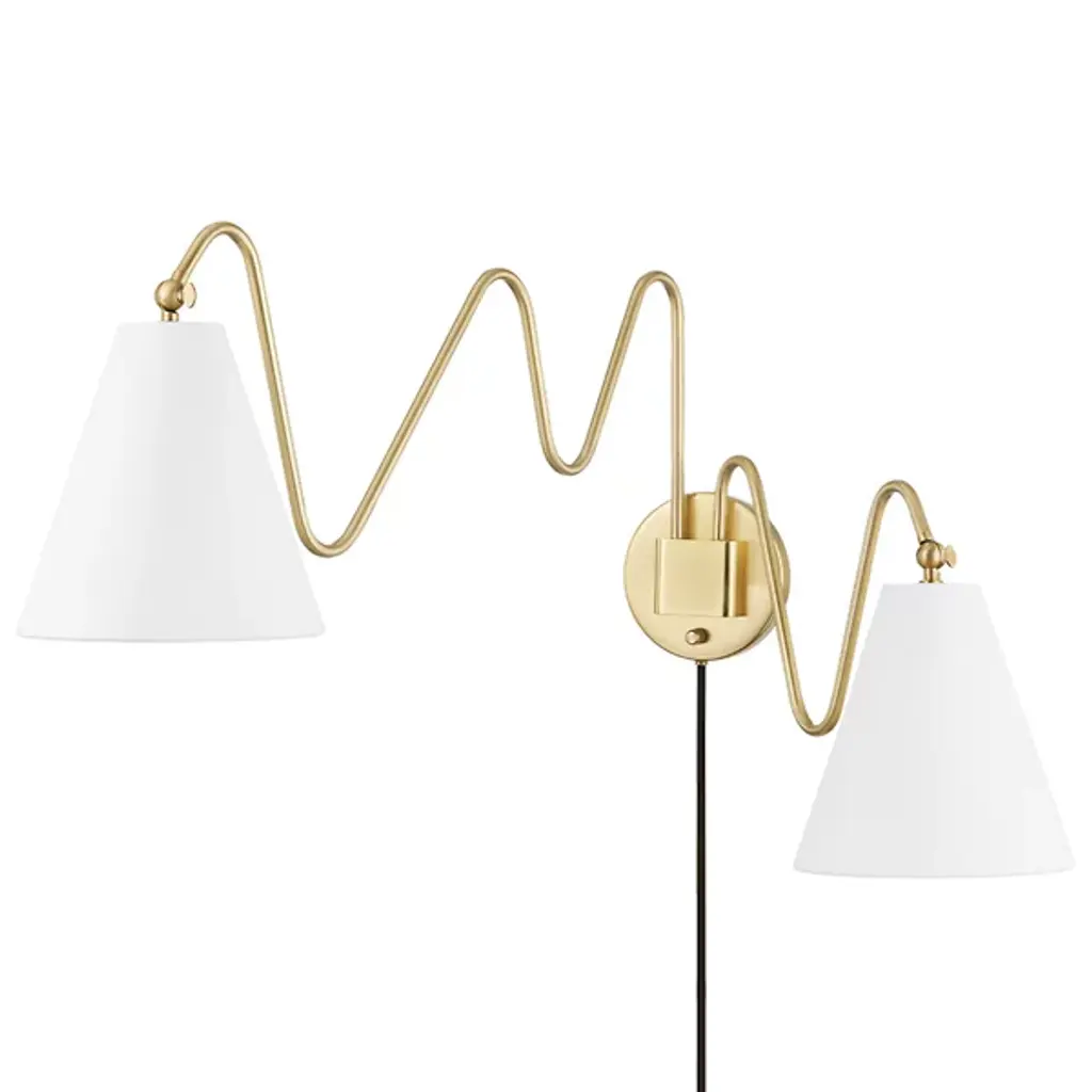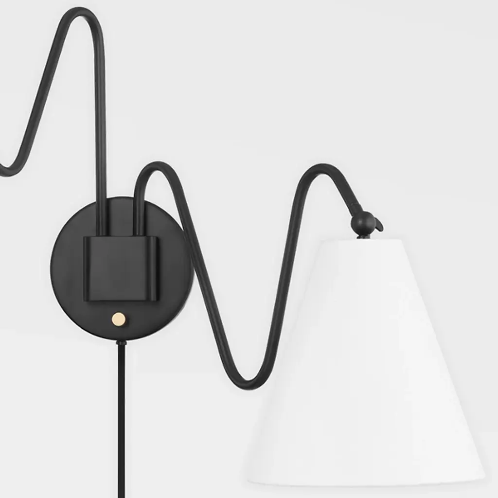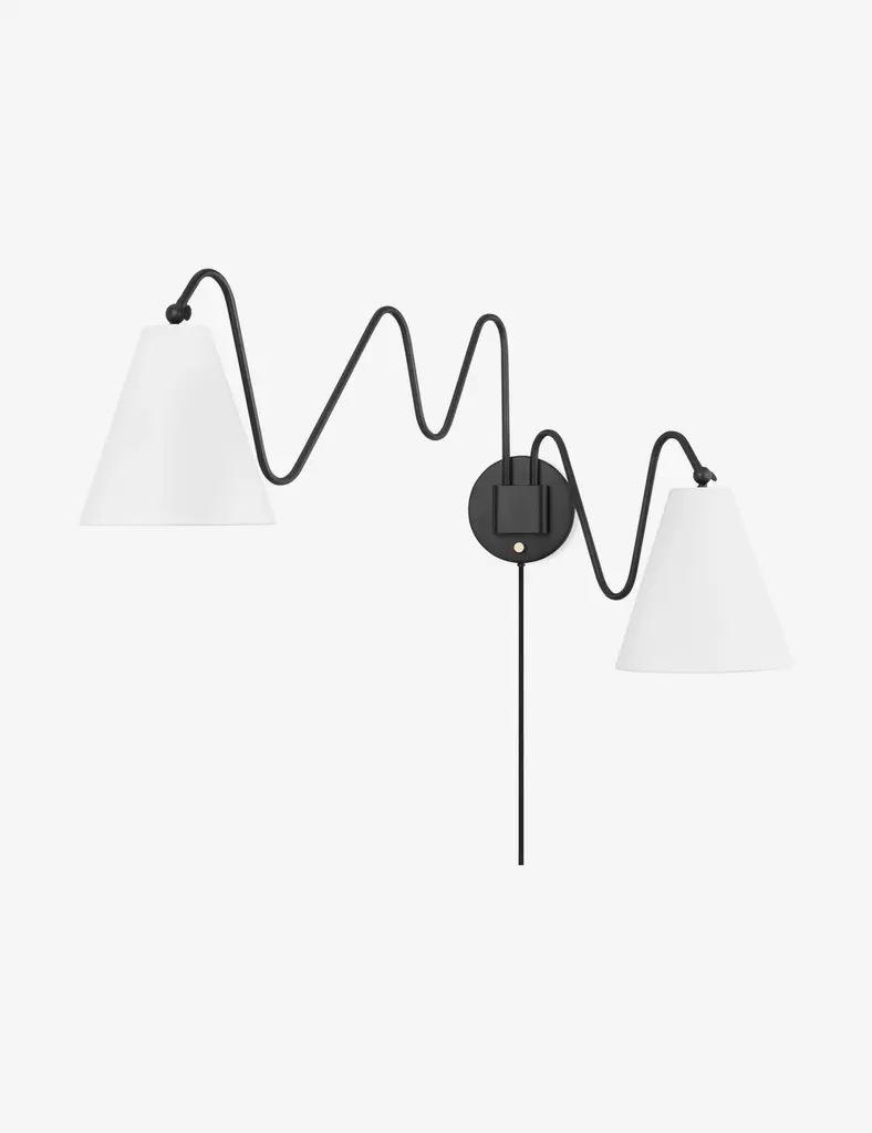 Dynamic and transitional. The Onda Plug-In Wall Sconce by Tali Roth for Mitzi – Hudson Valley Lighting offers a fun and functional addition to any space you desire. A pair of squiggly arms give the product a sense of motion, and they are made out of iron so that this light fixture can withstand the test of time. Each arm has a conical Belgian linen shade at the end, softening both the fixture’s appearance as well as the glow from within, filling your room with a gentle ambiance.