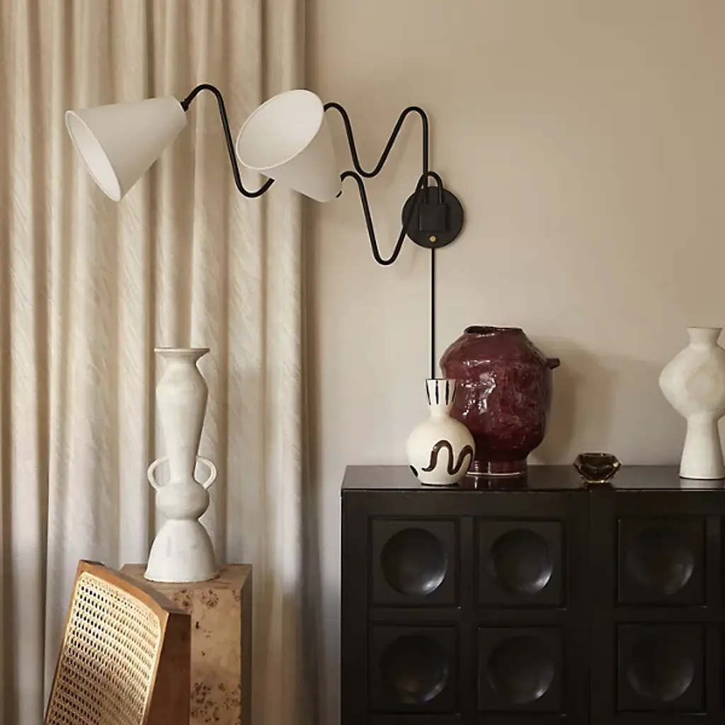 Dynamic and transitional. The Onda Plug-In Wall Sconce by Tali Roth for Mitzi – Hudson Valley Lighting offers a fun and functional addition to any space you desire. A pair of squiggly arms give the product a sense of motion, and they are made out of iron so that this light fixture can withstand the test of time. Each arm has a conical Belgian linen shade at the end, softening both the fixture’s appearance as well as the glow from within, filling your room with a gentle ambiance.