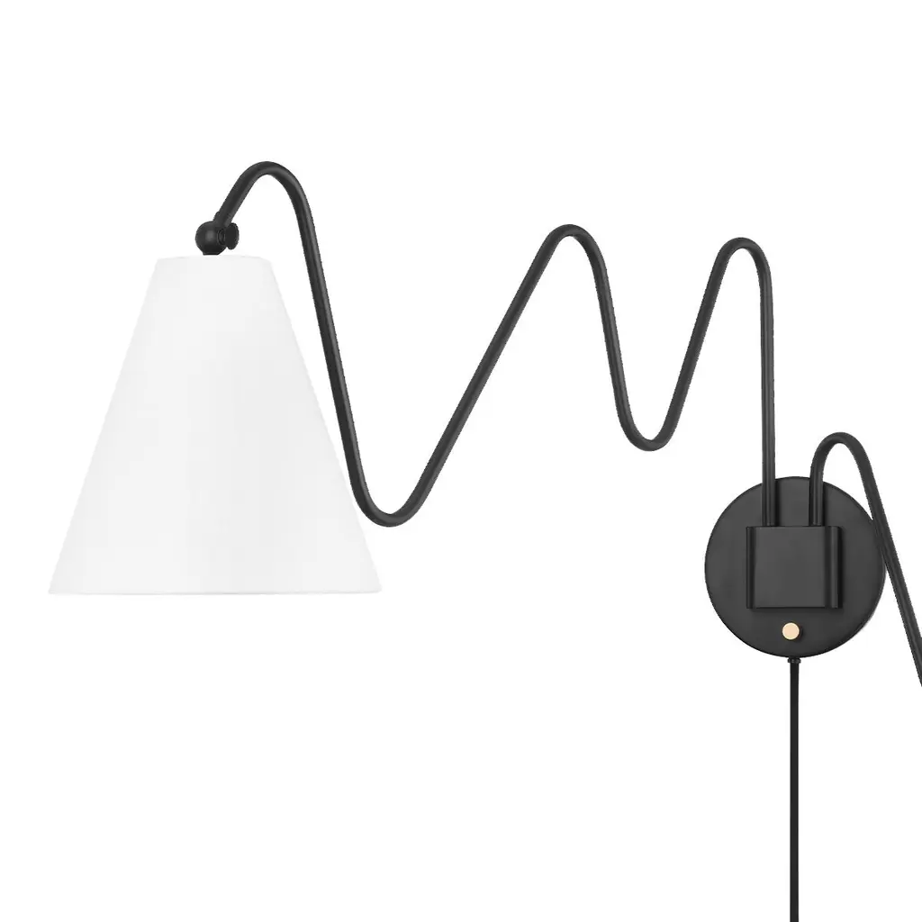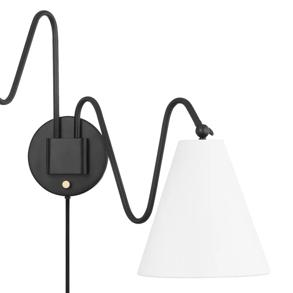 This plug-in sconce is not only eye-catching but versatile as well. Each of its wavy arms one long and one short can be swung from side to side, and its Belgian linen shades can be angled up, down, and in between so that you can direct light exactly where you need it. What's more, the sconce is damp rated, so you can use it in a bathroom as well as beside a bed, in a dining room, or just about anywhere else in your home.