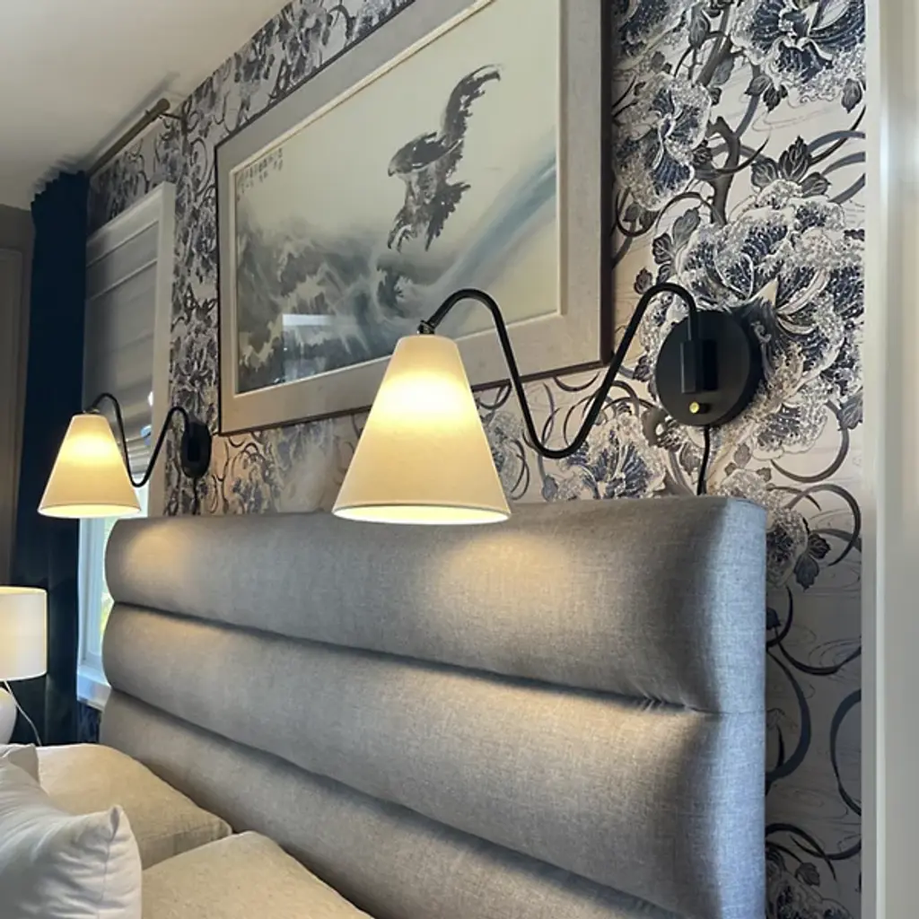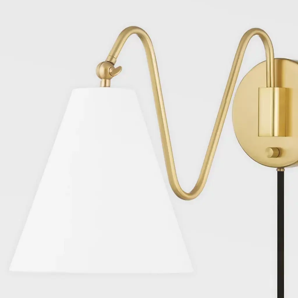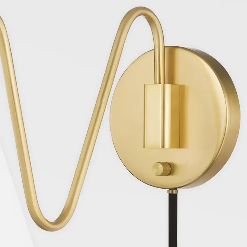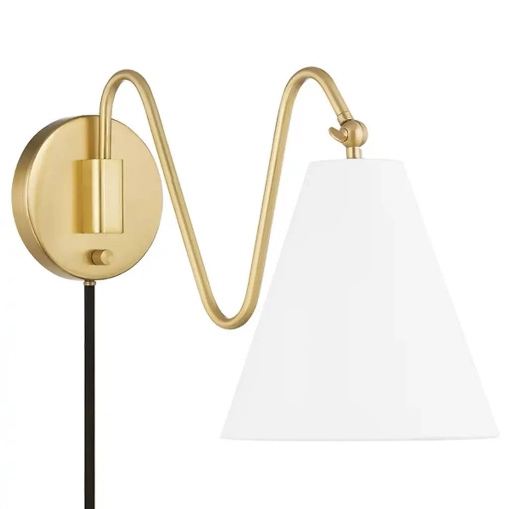 Curvaceous with a loose style. The Onda Plug-in Wall Sconce was designed by Tali Roth for Mitzi – Hudson Valley Lighting and features a simple yet eye-catching design that fits settings both traditional and modern. The squiggly arms give the piece a sense of dynamic motion, and they, plus the backplate, are made out of iron for long-lasting durability. A conical Belgian linen shade adds a touch of softness to the fixture, filling the room with a gorgeous, ambient glow.