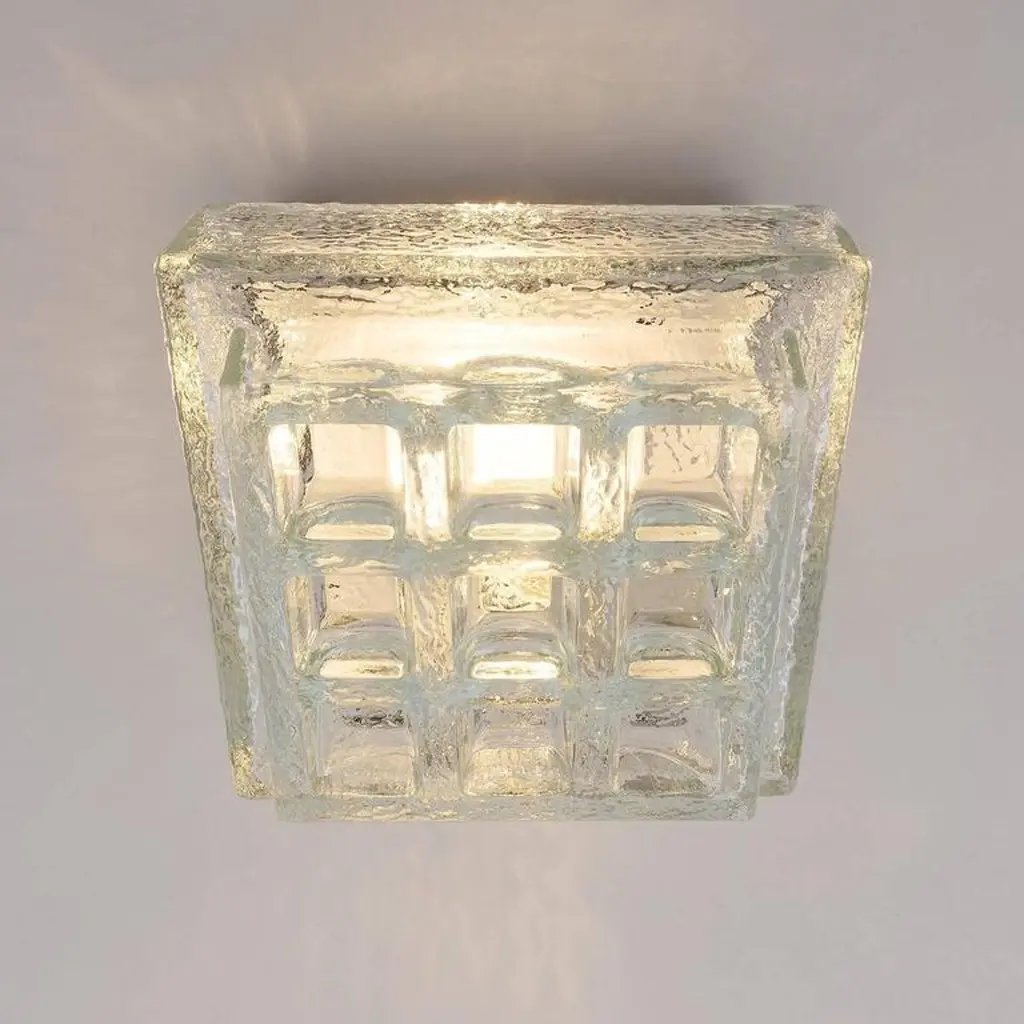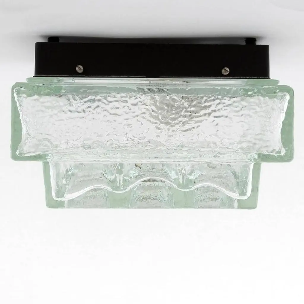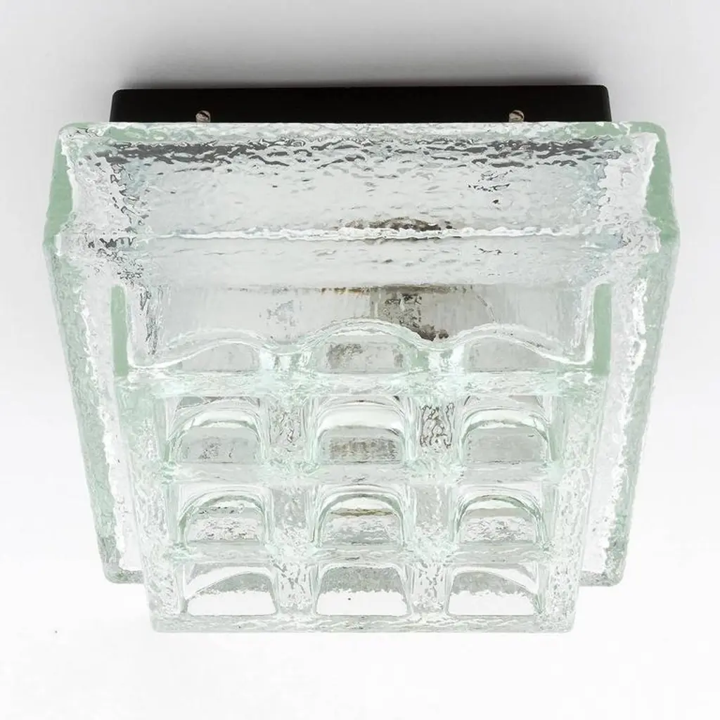 One Of Five Square Limburg Textured Glass Flush Mount Lights Or Sconces, 1970