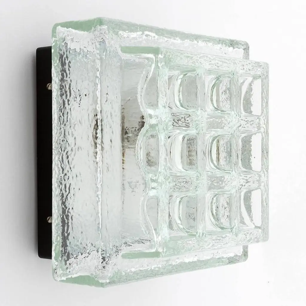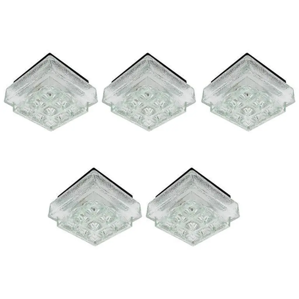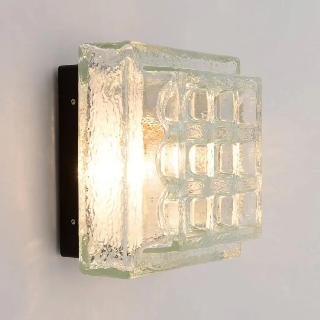 One Of Five Square Limburg Textured Glass Flush Mount Lights Or Sconces, 1970