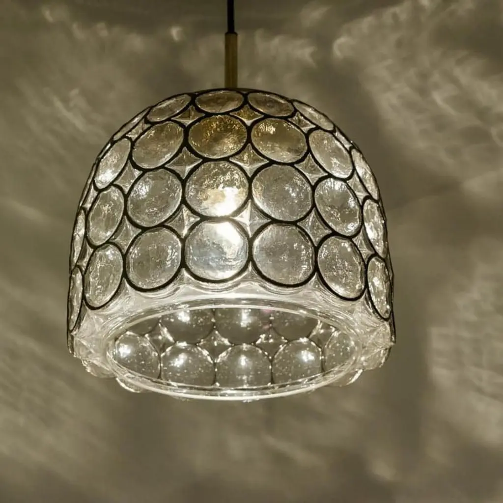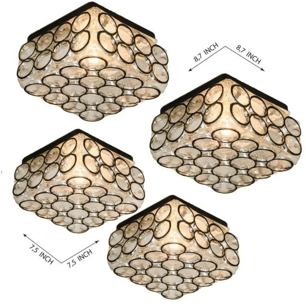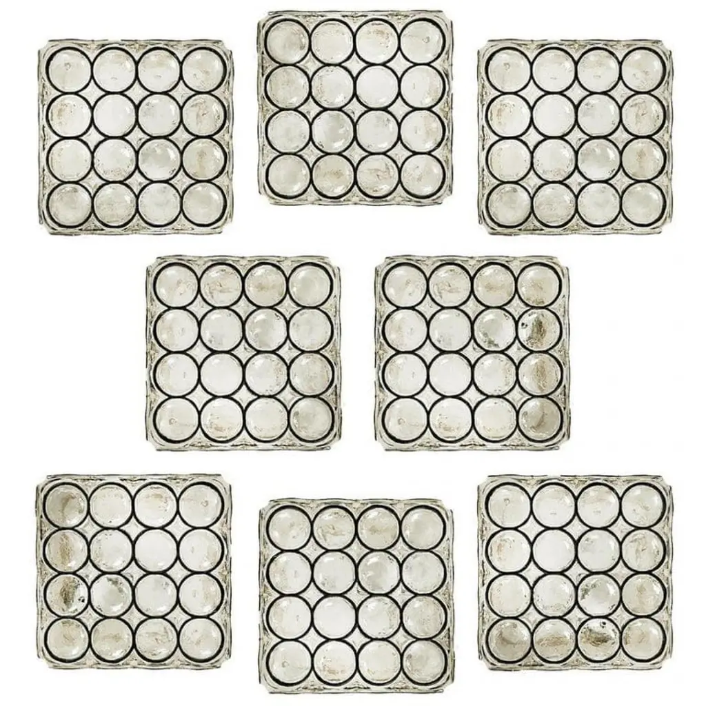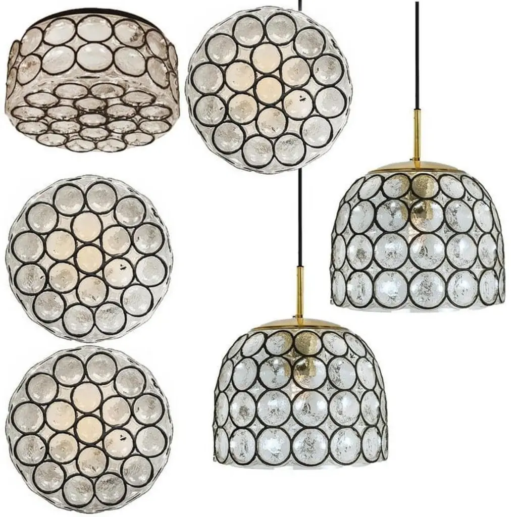 1 of the 4 square iron rings and glass flush mount light/wall light by Glashütte Limburg, Germany, circa 1965. Featuring thick clean heavy blown glass with concaved round iron rings. Illuminates beautifully.Size: 8.7" x 8.7" x 4.7" (22 x 22cm x 12 cm),In very good condition, cleaned and well wired. Each light fixture requires two E27 light bulbs (Max 60W) up to 40 watts each and is compatible with the US /UK/.. standards. - All electrical items function on various voltage standards (from 110 till 240 volts / Ex. USA-UK- etc.) Also LED compatible.