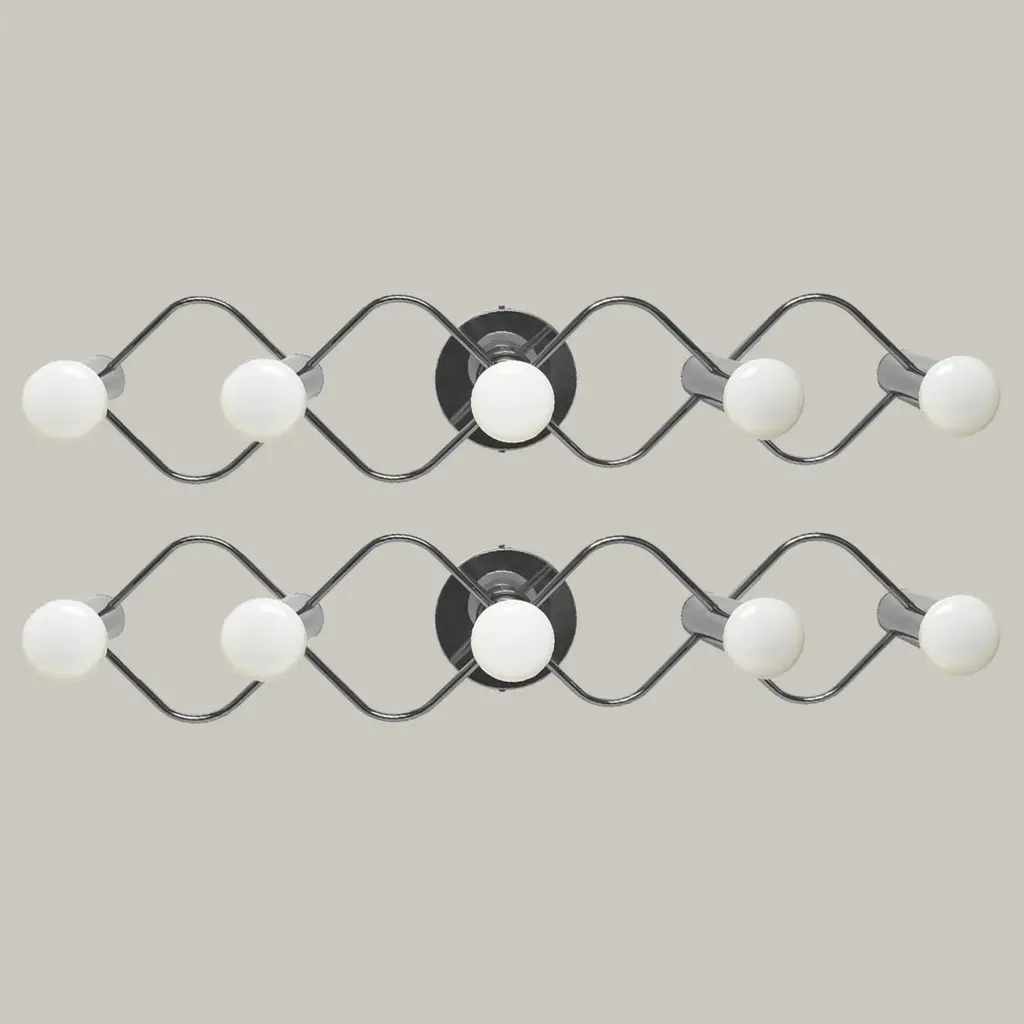 A gorgeous pair of Sciolari-style ceiling or wall lights by Leola. Made of chromed brass, Germany, 1970s.Please notice the price is for one piece, two pieces available.Dimensions:Height: 6.70" (17 cm)Width: 29.92" (76 cm)Depth: 5.90" (15 cm)The light fixture requires 5 E14 candelabra bulbs, each up to 40 watts. Different effects can be achieved by fitting different light bulbs, pygmy clear light bulbs for a Classic look, or glamorous by fitting gold tone bulbs.