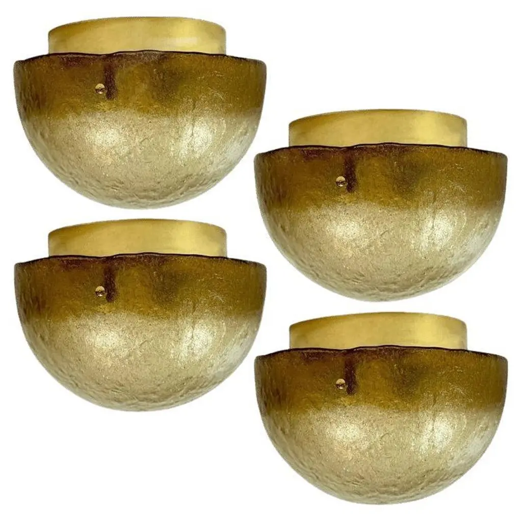 One Of Two Doria Amber Glass And Brass Wall Light Sconces Or Flush Mount
