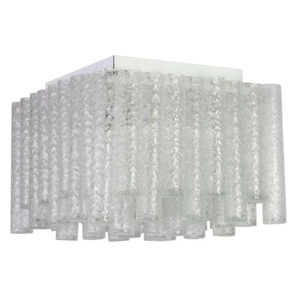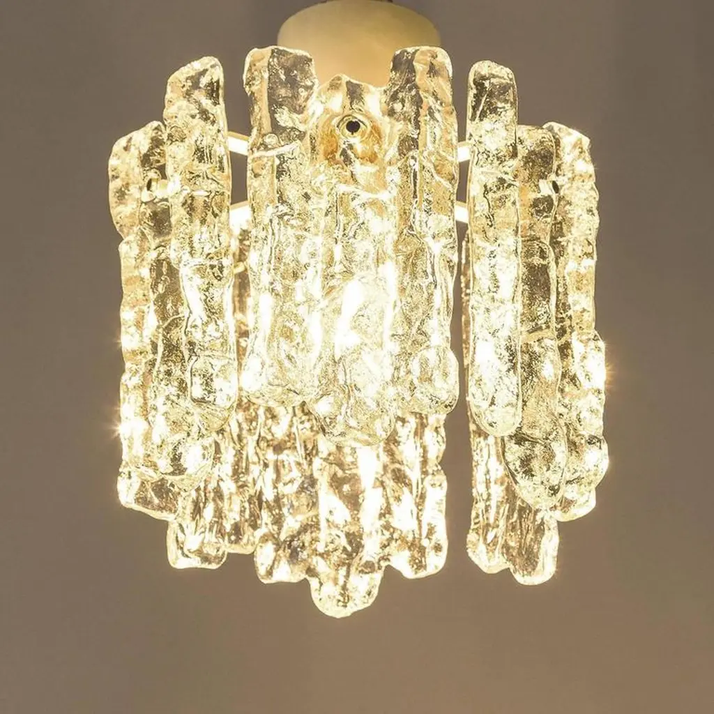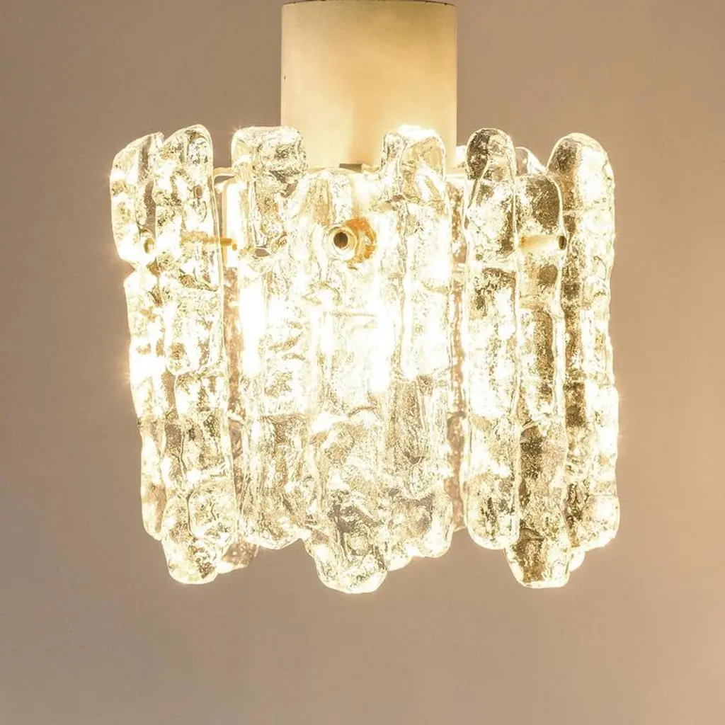 One Of Two Kalmar Flush Mount Lights, Ice Glass, 1970