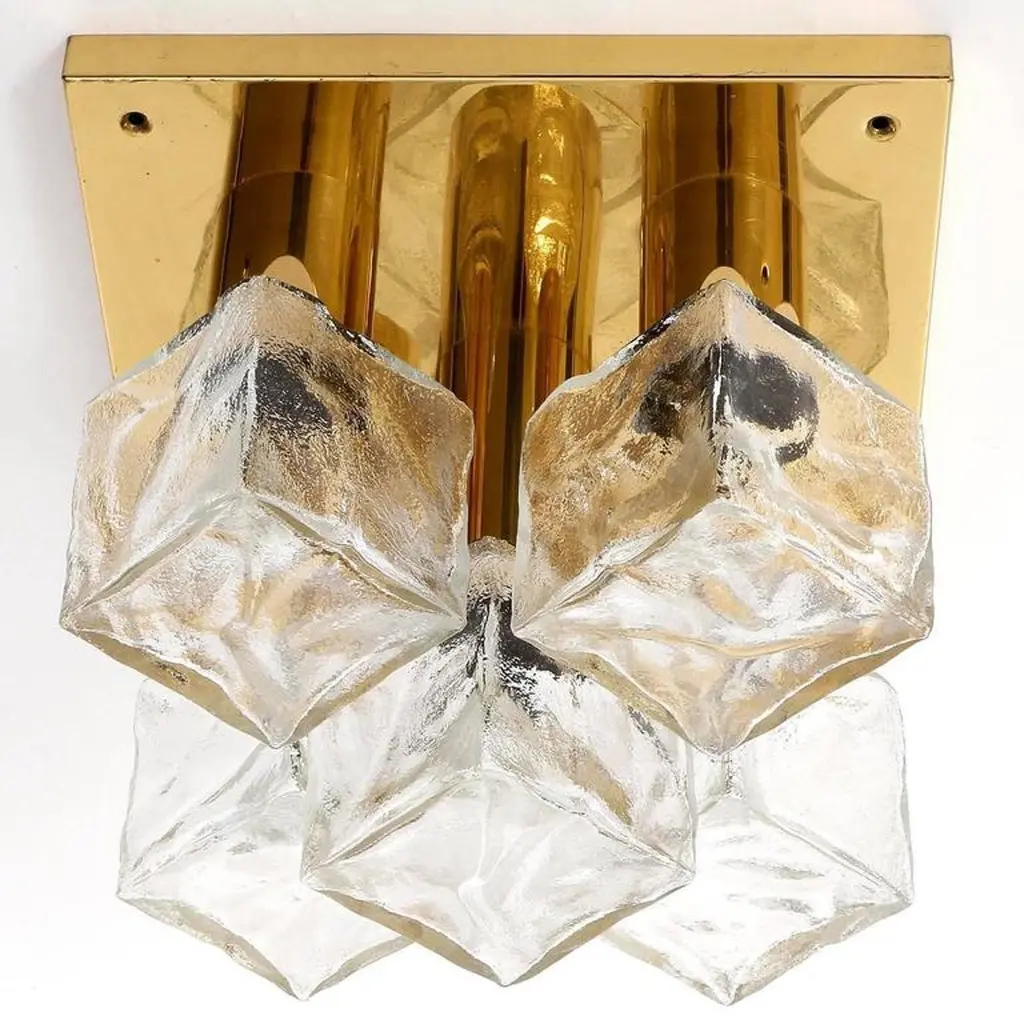 One Of Two Modulare Kalmar Flush Mount Lights Or Sconces, Brass Ice Glass, 1960s