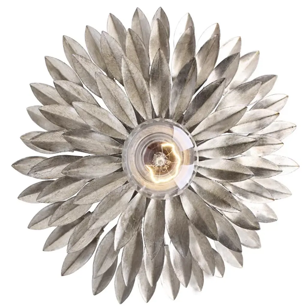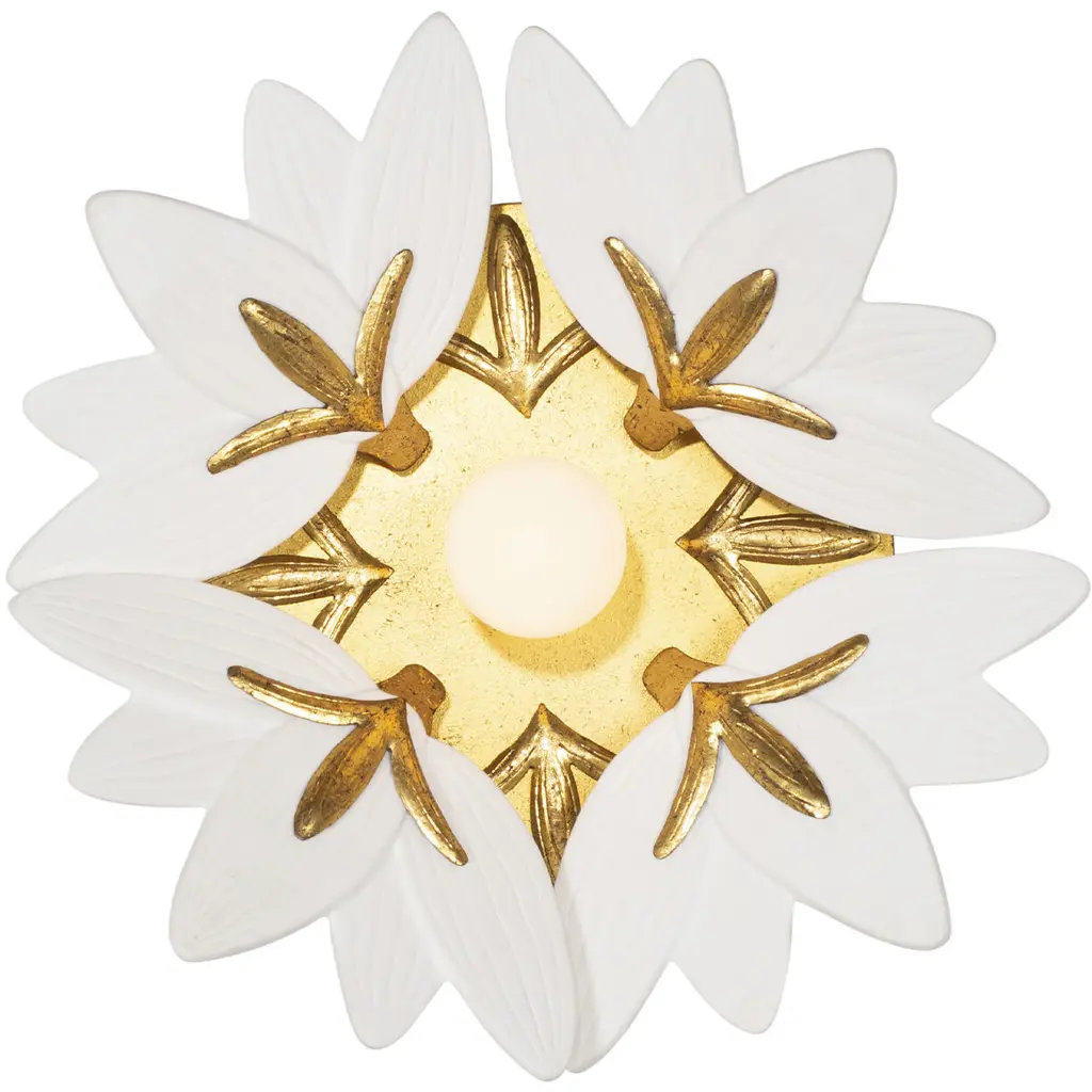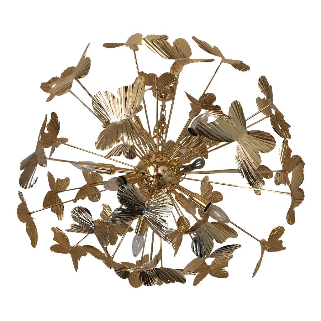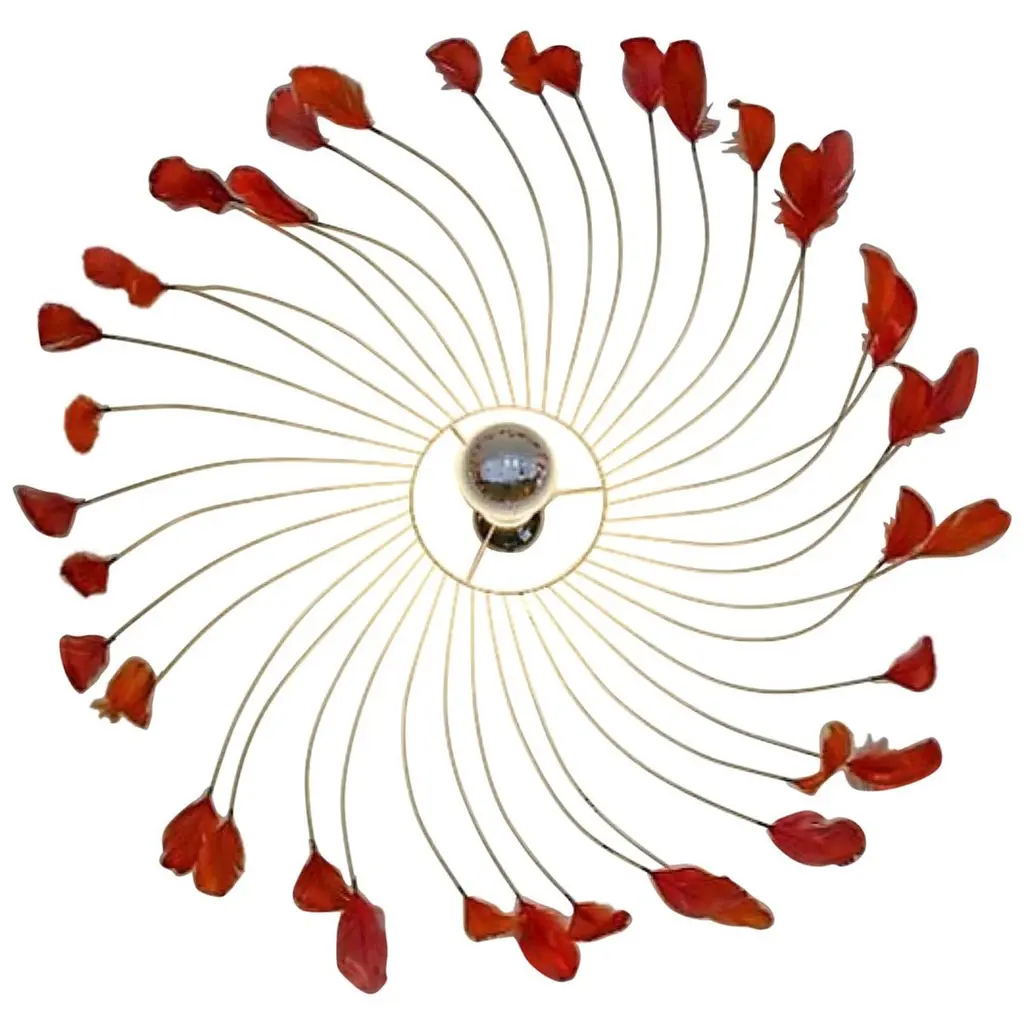 Italian brass flushmount ceiling light In the shape of a star or flower with ribbed Murano glass leaves. Condition: Excellent vintage condition, minor wear consistent with age and use.Dimensions flush mount or wall light;Height: 12.9"Diameter:24"The light requires eight single E14 screw fit lightbulbs (60Watt max.) LED compatible.This ceiling lamp can also be used as a wall lamp.