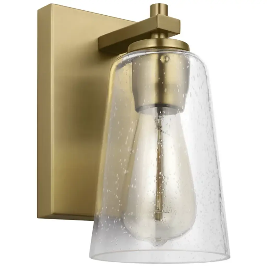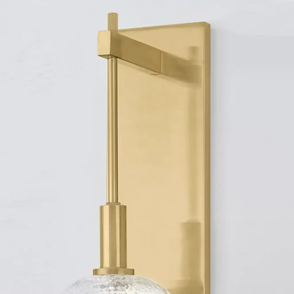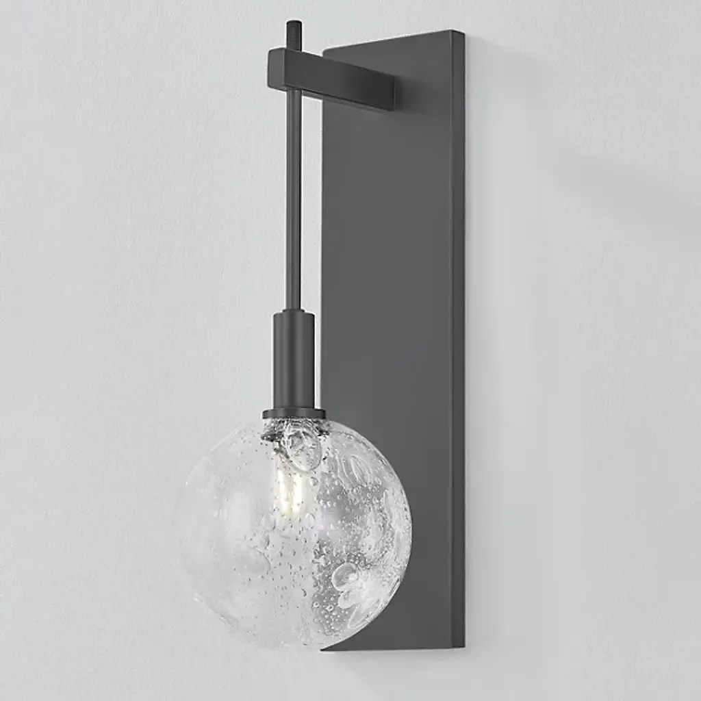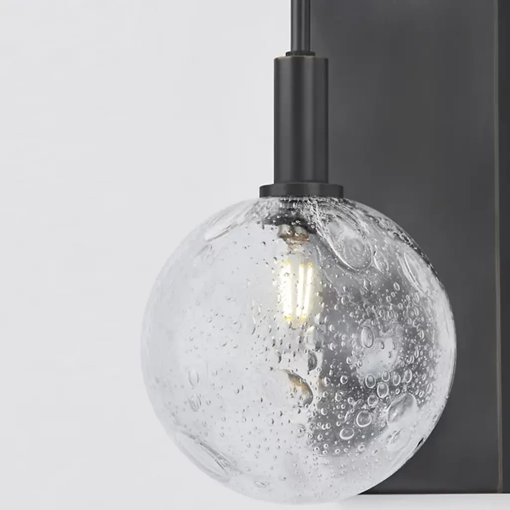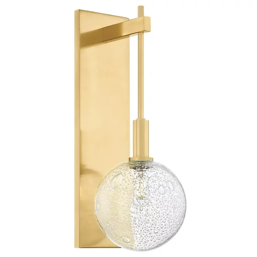 The Onteora Wall Sconce from Hudson Valley Lighting takes cues from pendulum clocks of yesteryear. The vertical arrangement emphasizes its long, lean profile, while seed bubbles trapped within the glass sphere offer sparkle and charm. The extended arm positions the light perfectly, complementing the precision of its mechanical inspiration. Rather than merely mimicking timepiece elements, this sconce reinterprets them through a fresh lens. The metalwork provides clean, purposeful support for the decorative glass globe.