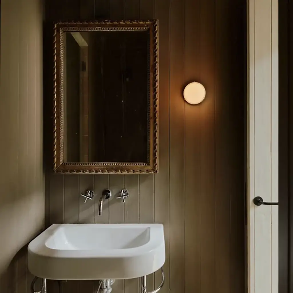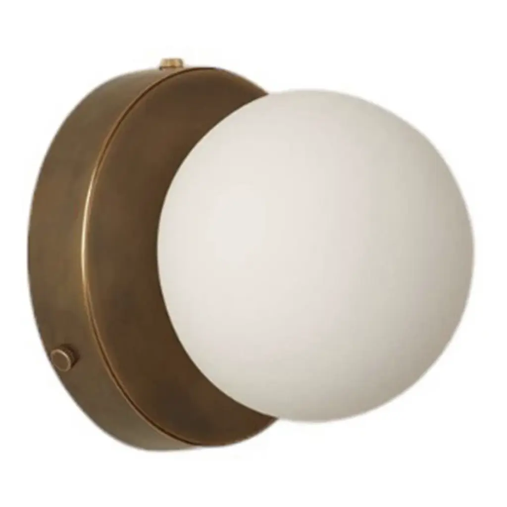 Diminutive and daring, the Orb 4 Surface Wall Sconce from In Common With stands defiantly on its own design merits. A striking fixture extending from a steel circle mount that can be affixed to a wall or ceiling, it sets a hand-blown glass sphere around strong and damp-listed lamping within, cleanly intersecting with the base, refusing to bow to ephemeral trends in favor of clean lines and a simple design. The translucent glass surface extends a soft glow around the fixture, burnishing the mount and the mounting surface with indirect light while casting measured ambiance around it, showing simplicity, restraint, and consideration as it enhances its surroundings.