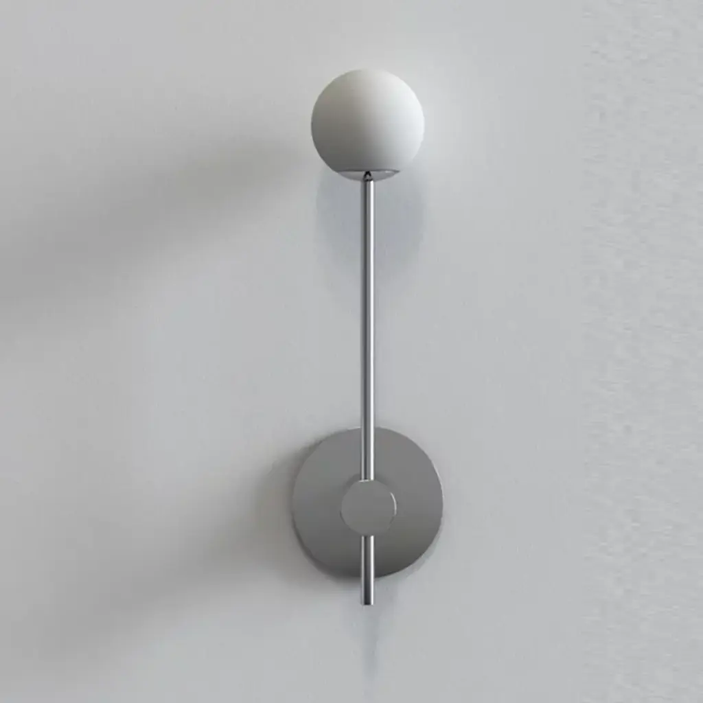 A sleek, modern piece from Astro Lighting's Capsule Collection Volume 01, the Orb Wall Sconce introduces a bright, gleaming glow to the spaces of your home. Made of smooth and reflective metal, the silhouette of this piece consists of a round base, a brief arm, and a long and slender body. An acid-etched glass orb rests at the end, holding an integrated LED which emits a bright and even layer of light throughout the room.