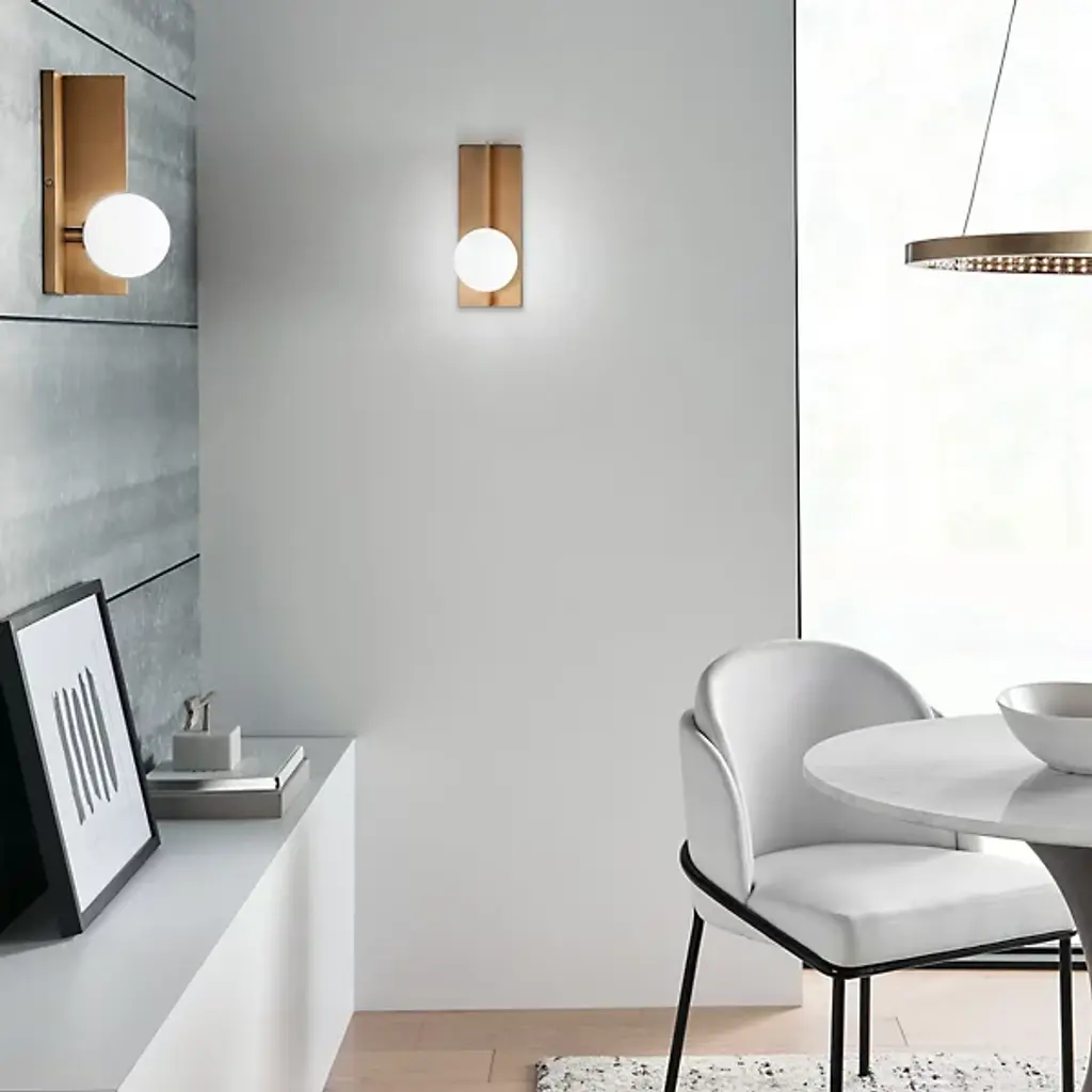 A delightfully stylish wall sconce that has a swing in addition to substance. The Orbel Wall Sconce by Visual Comfort Modern, formerly known as Tech Lighting, has charm from its simple design, as well as elegance from its luxurious finishing. The spherical Glass shade at the bottom of the fixture glows warmly when the bulb within is illuminated. The mid-century modern look gives it an artistic and geometric flair that will make a striking statement in any room you install it in.