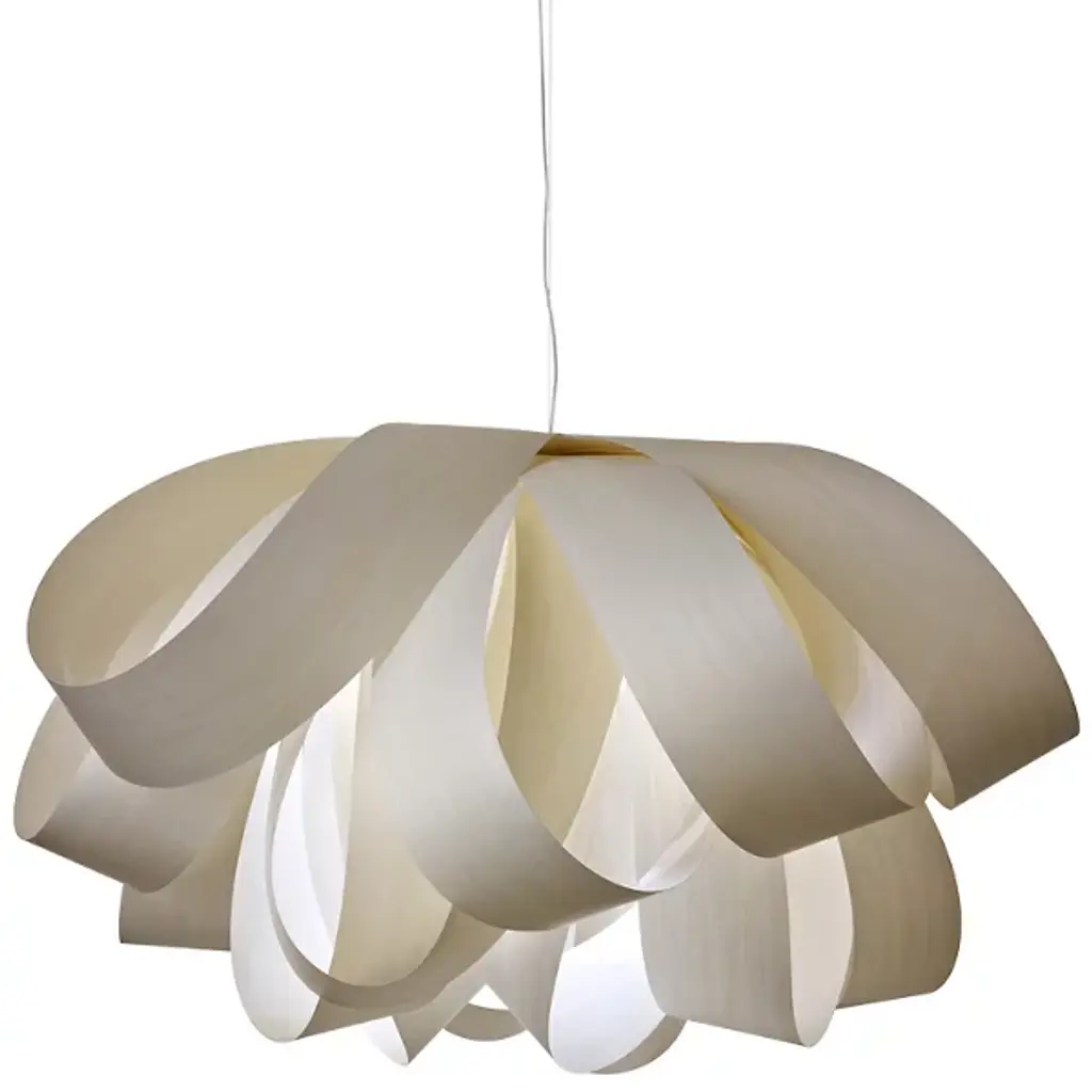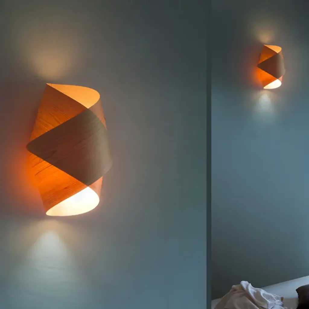 The LZF Orbit Wall Sconce uses the most minimal twist and turn of a ribbon of wood veneer creating an elegant, intertwined silhouette. The simplicity of the shade's design creates an airy appearance, while the overlapping wood-grain texture confers a pleasant warmth and glow. The Orbit Wall Sconce features a Natural timber wood veneer shade in a variety of colors.