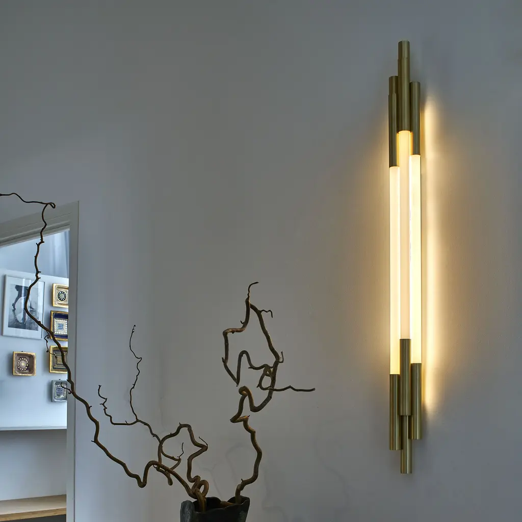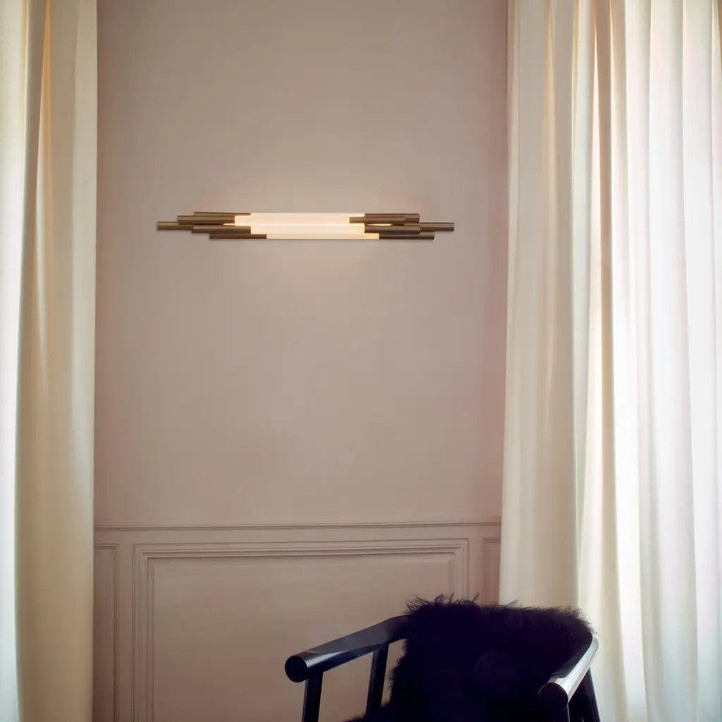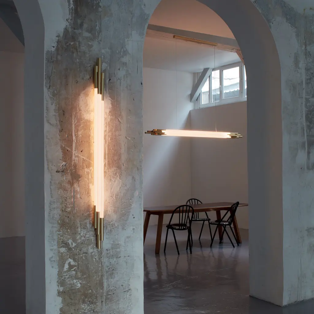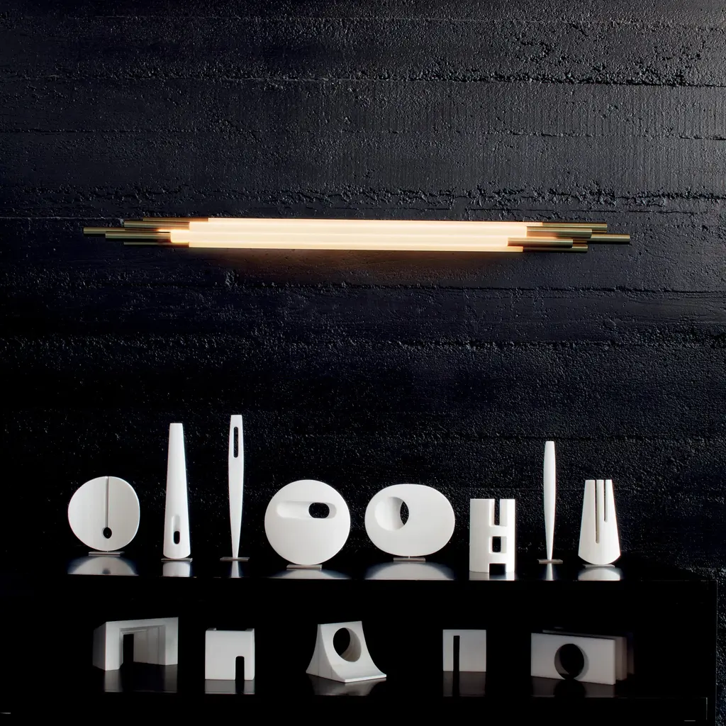 Inspired by science fiction and astronomy, Org is likened to the sight of a shooting star by its creator Sebastian Samma. The Berlin-based designer bundles an array of opal glass tubes powered by integrated LED light sources and capped with metallic detail. Available in 2 models of differing lengths and corresponding brightness, the fixture can be oriented either vertically or horizontally.