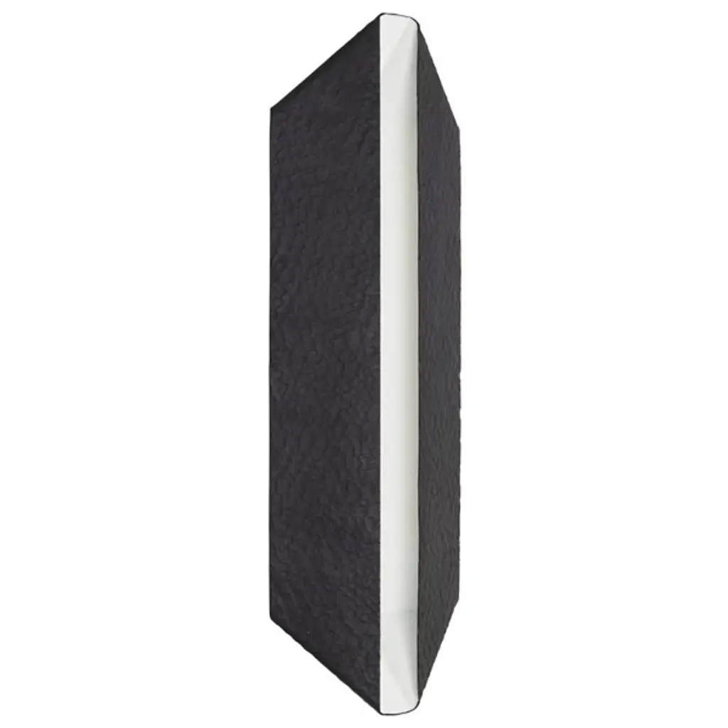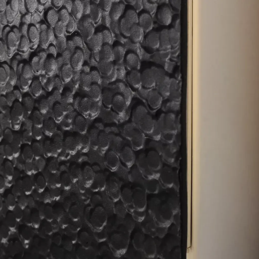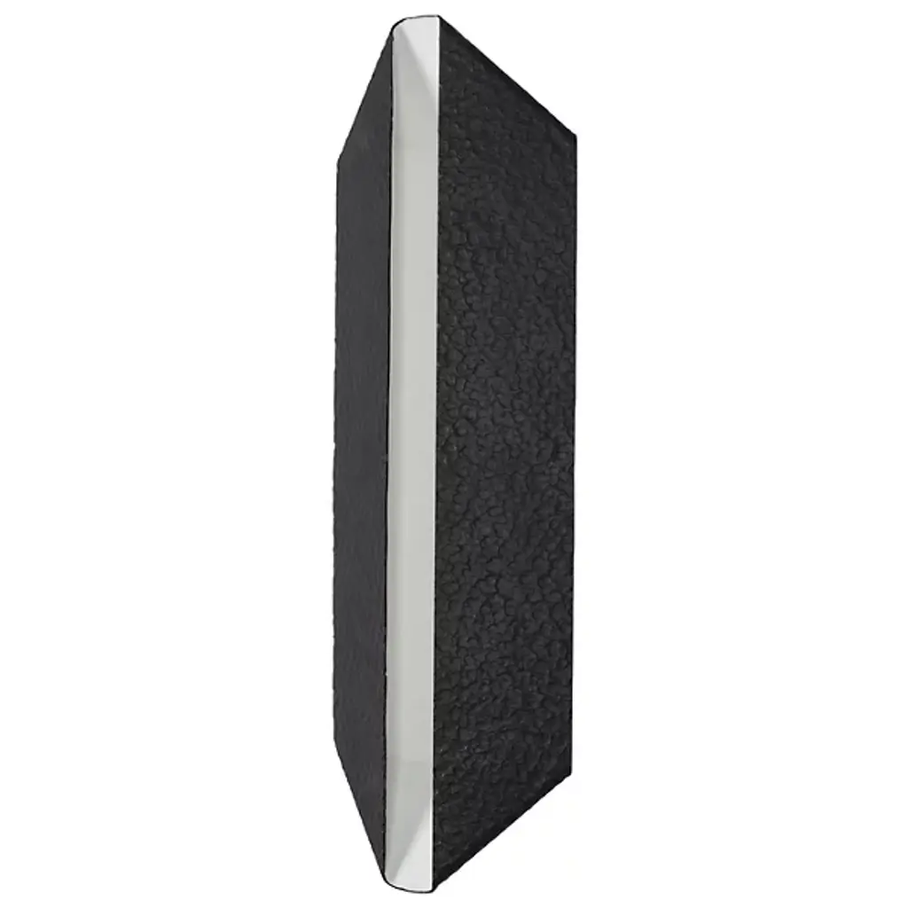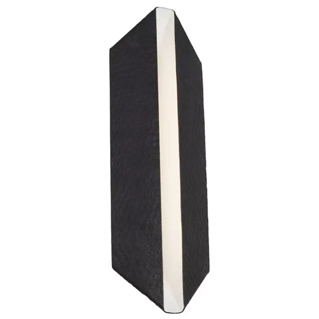 The Ori LED Outdoor Wall Sconce from Kalco Lighting folds aluminum into sharp geometric planes that reference the art of Origami and abstract sculpture. The textured surface treatment creates dimensional contrast against smooth interior surfaces. A single light source runs along one edge, illuminating both the fixture itself and the surrounding wall surface. The sconce’s aluminum construction ensures weather resistance, while the interplay between textured and smooth surfaces adds depth to what could otherwise be a simple angular form.