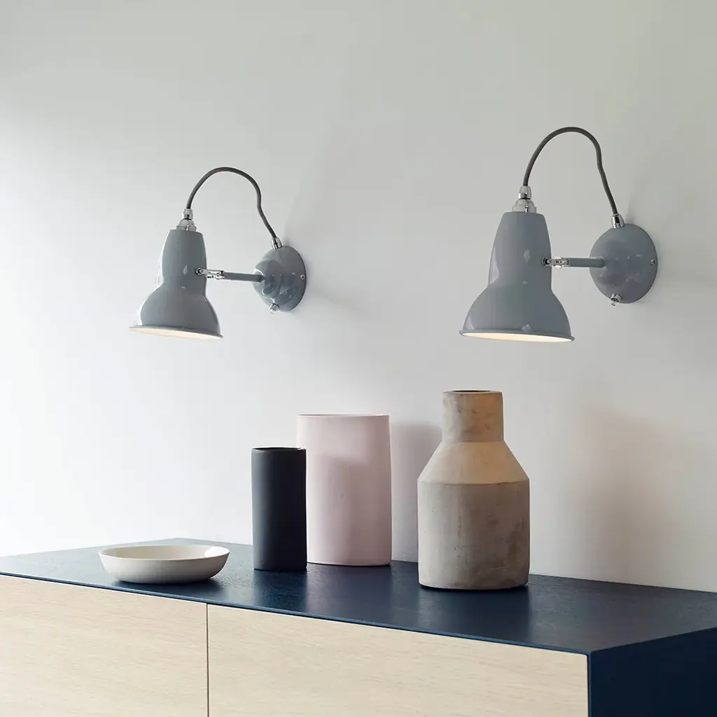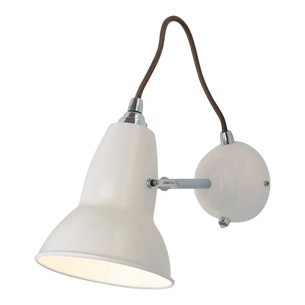 Chrome fittings and colored braided cable give a contemporary twist to the retro aesthetic of this compact wall light. The base has a built in switch for ease of use and the flexible shade can be rotated to direct just the right amount of light where needed.