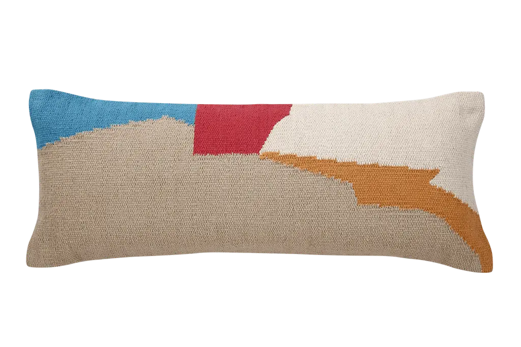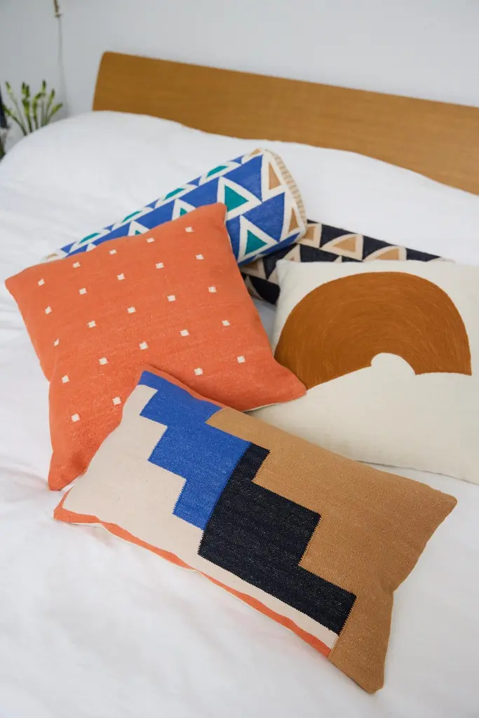This geometric throw pillow has been ethically hand woven by artisans in Rajasthan, India, using a traditional weaving technique which is native to this region.The purchase of this handcrafted pillow helps to support the artisans and preserve their craft.Each piece may vary slightly due to the nature of handcrafted goods.face: 100% handwoven cottonreverse: cotton canvasconcealed zipper closure18"x18"dry cleaninsert not included