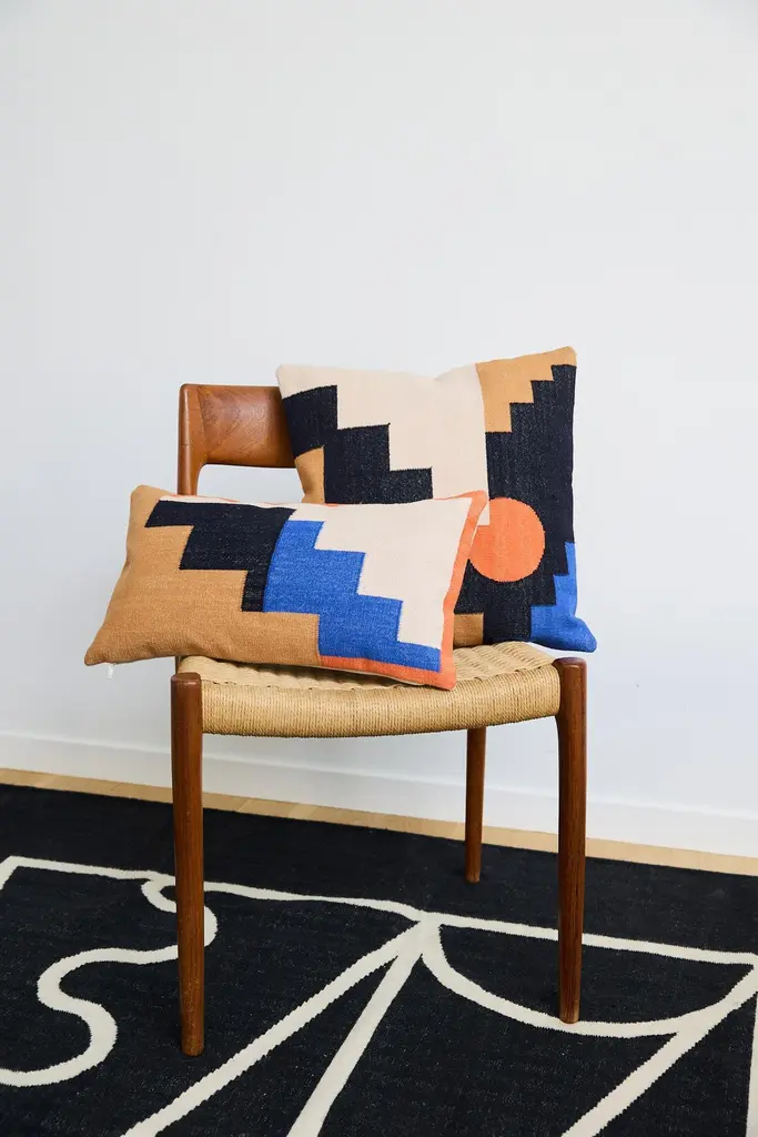This geometric throw pillow has been ethically hand woven by artisans in Rajasthan, India, using a traditional weaving technique which is native to this region.The purchase of this handcrafted pillow helps to support the artisans and preserve their craft.Each piece may vary slightly due to the nature of handcrafted goods.face: 100% handwoven cottonreverse: cotton canvasconcealed zipper closure18"x18"dry cleaninsert not included