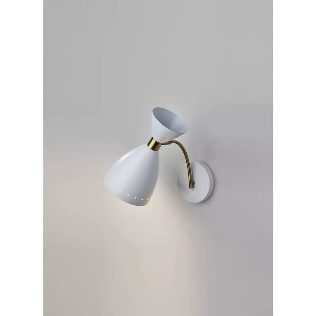 Oscar Wall Light White - Adesso: Mid-century Modern Adjustable Sconce, Etl Listed, No Assembly Required