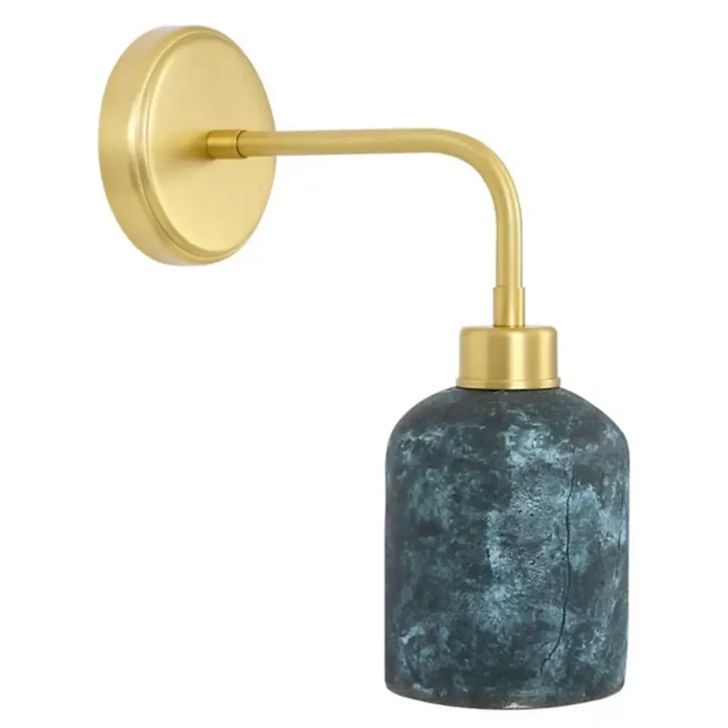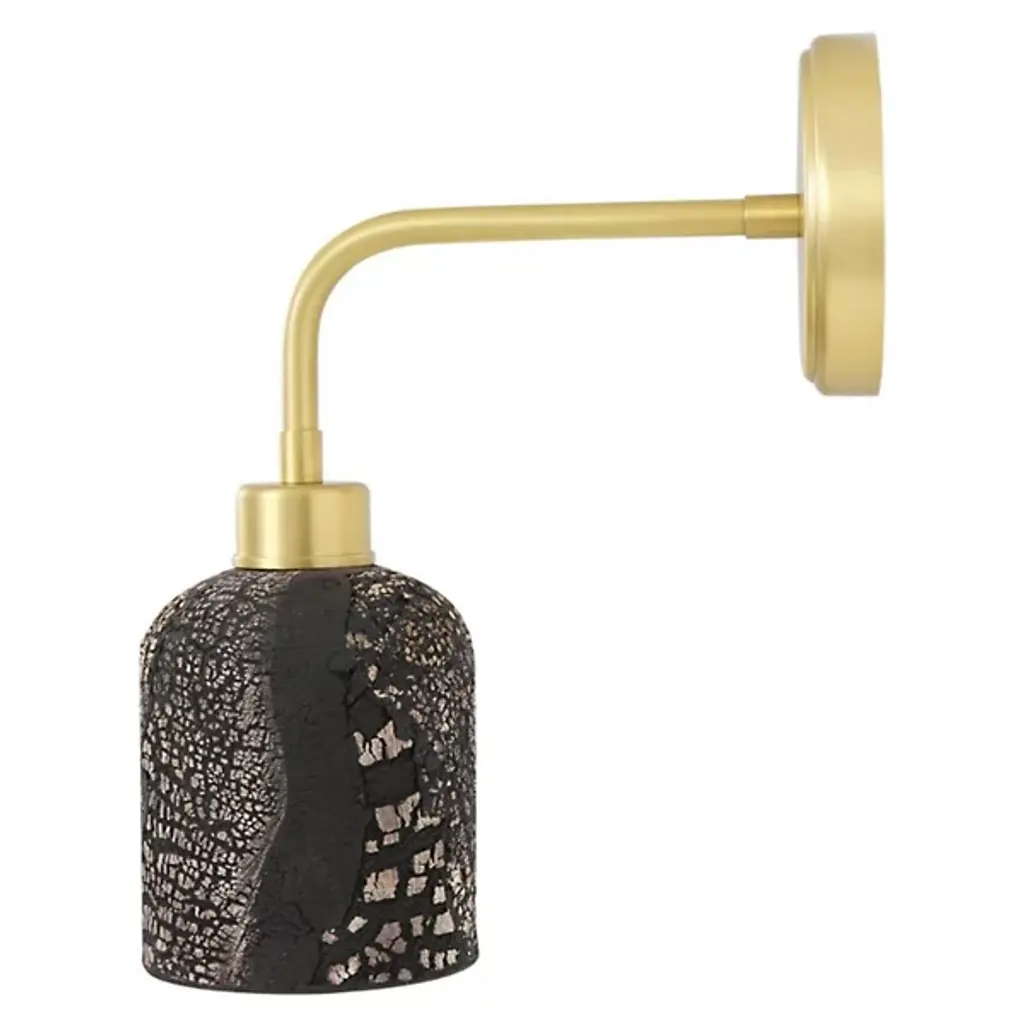 The Osier Wall Sconce from Mullan Lighting is an expressive transitional design that makes its round ceramic shade the center of attention. The sconce is made to order in Mullan Village in the Republic of Ireland and relies on a slender brass arm emerging from a circular wall plate to support its intricate, handmade shade. The rich metal contrasts well with the natural imperfections of each shade, while the shades shape the light within, creating a focused spot of task light while enhancing nearby walls with radiant warmth.