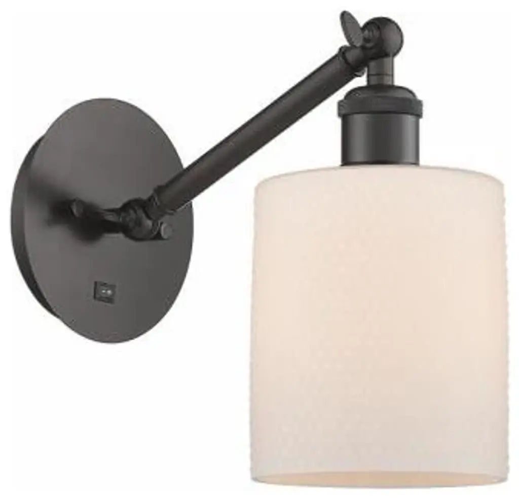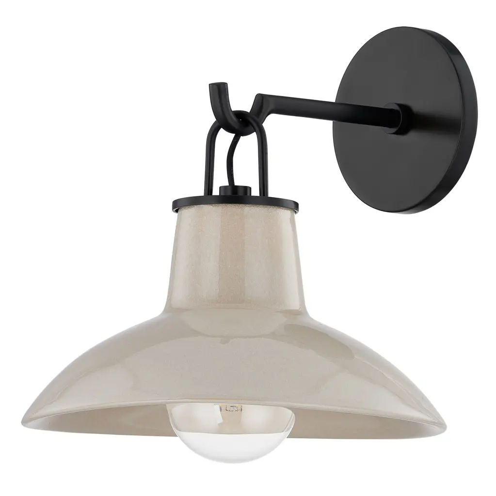The Osier Wall Sconce from Mullan Lighting is an expressive transitional design that makes its round ceramic shade the center of attention. The sconce is made to order in Mullan Village in the Republic of Ireland and relies on a slender brass arm emerging from a circular wall plate to support its intricate, handmade shade. The rich metal contrasts well with the natural imperfections of each shade, while the shades shape the light within, creating a focused spot of task light while enhancing nearby walls with radiant warmth.