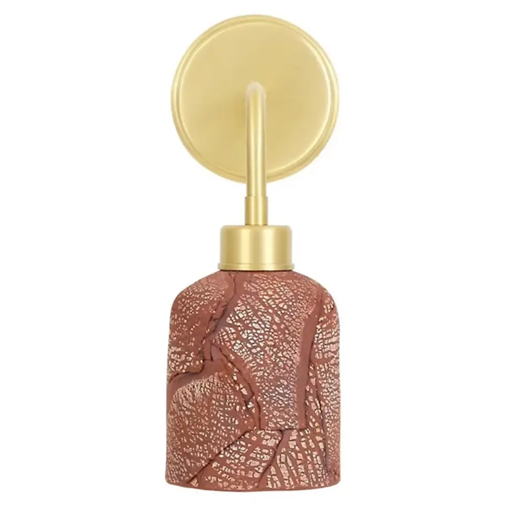 The Osier Wall Sconce from Mullan Lighting is an expressive transitional design that makes its round ceramic shade the center of attention. The sconce is made to order in Mullan Village in the Republic of Ireland and relies on a slender brass arm emerging from a circular wall plate to support its intricate, handmade shade. The rich metal contrasts well with the natural imperfections of each shade, while the shades shape the light within, creating a focused spot of task light while enhancing nearby walls with radiant warmth.