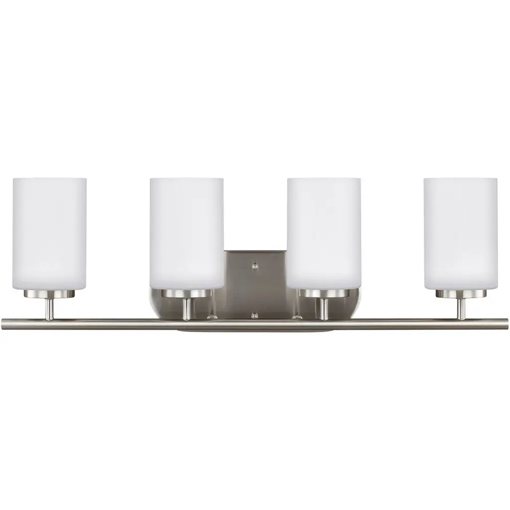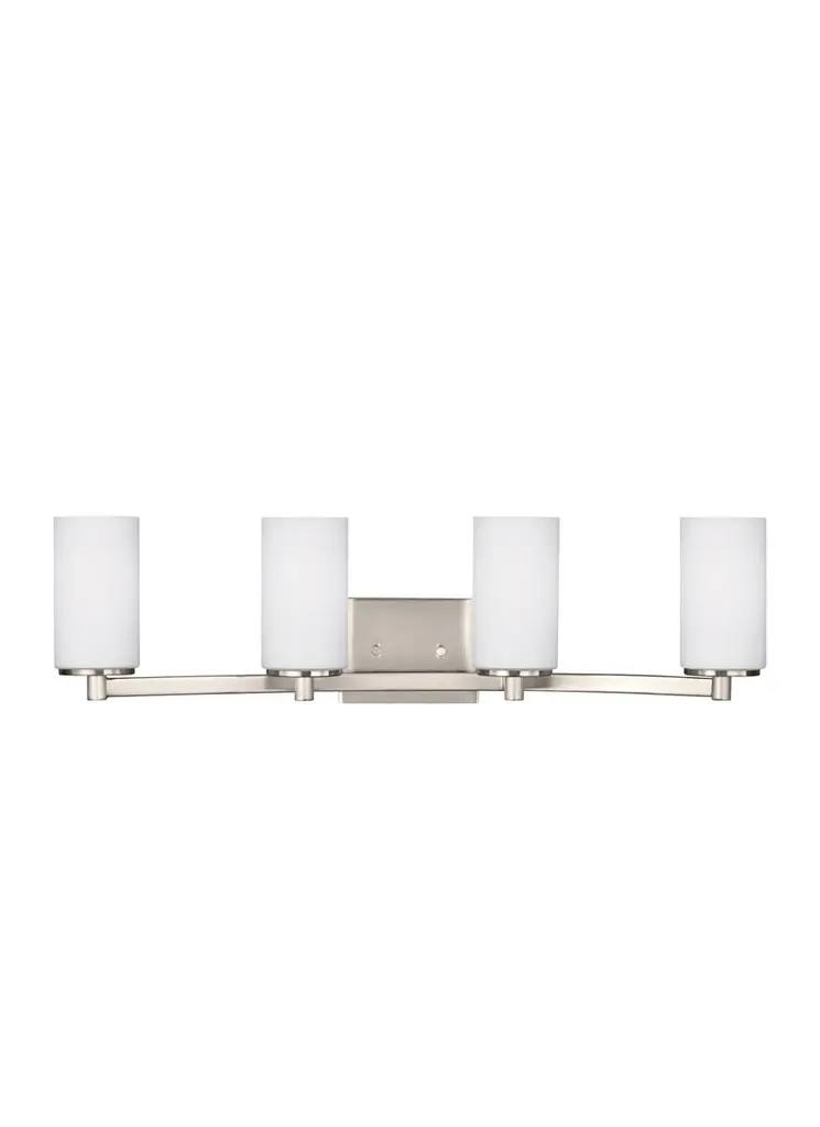 The Oslo four light vanity fixture in chrome is an ENERGY STAR½ qualified lighting fixture that uses LED bulbs to save you both time and money. The Oslo lighting collection by is a sleek design, with smooth and clean lines. The Opal Etched glass adds to this collection's contemporary and minimalist character. Offered in Chrome, Brushed Nickel, Burnt Sienna and textured Blacksmith finishes, the collection includes nine-, five-, and three-light chandeliers, pendants in four sizes, both flush and semi-flush ceiling fixtures, as well as one-, two-, three- and four-light wall/bath fixtures. Both incandescent lamping and ENERGY STAR-qualified LED lamping are available. All fixtures are California Title 24 compliant.