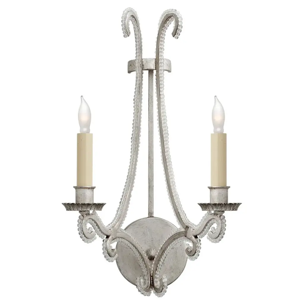 Give your home décor that certain something that sets it apart with the Oslo Wall Sconce by Visual Comfort Signature, formerly known as Visual Comfort, It features graceful vintage-inspired scrollwork, clear glass bead trim and fluted bobeches for an ornamental, yet never ostentatious look. With candelabra bulb sockets and white candle cups, this 24-inch fixture is perfect for adding accent lighting and elegance to transitional spaces.