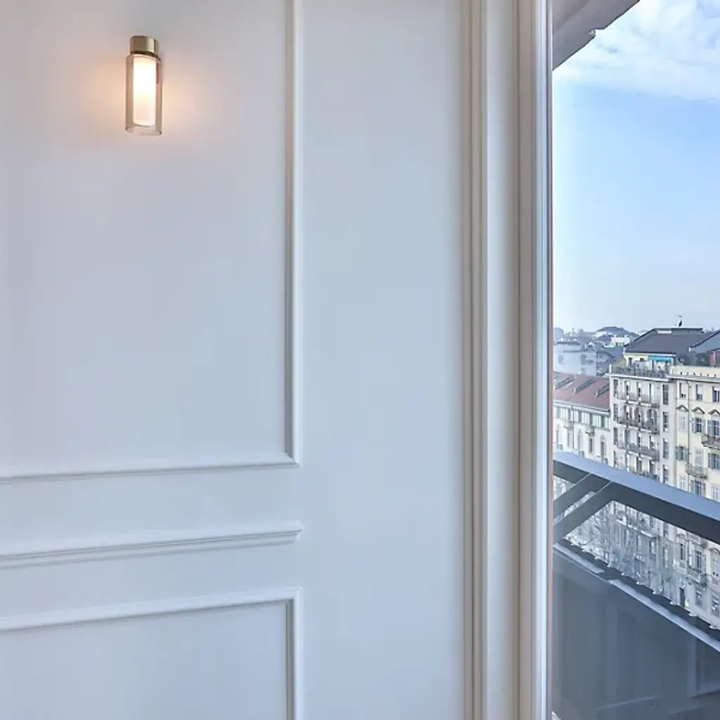 The Osman Wall Sconce is a design by Corrado Dotti of Milan for TOOY. Crafted in Italy, it features glass shading for a pleasant diffusion of light, paired with mindful metalwork that holds the structure in place on the wall. With an orthogonal structure as the basis of its inspiration, the Osman features well-balanced proportions to the bodice, while a slight avant-garde flair allows for it to bring intensity and drama to your spaces.