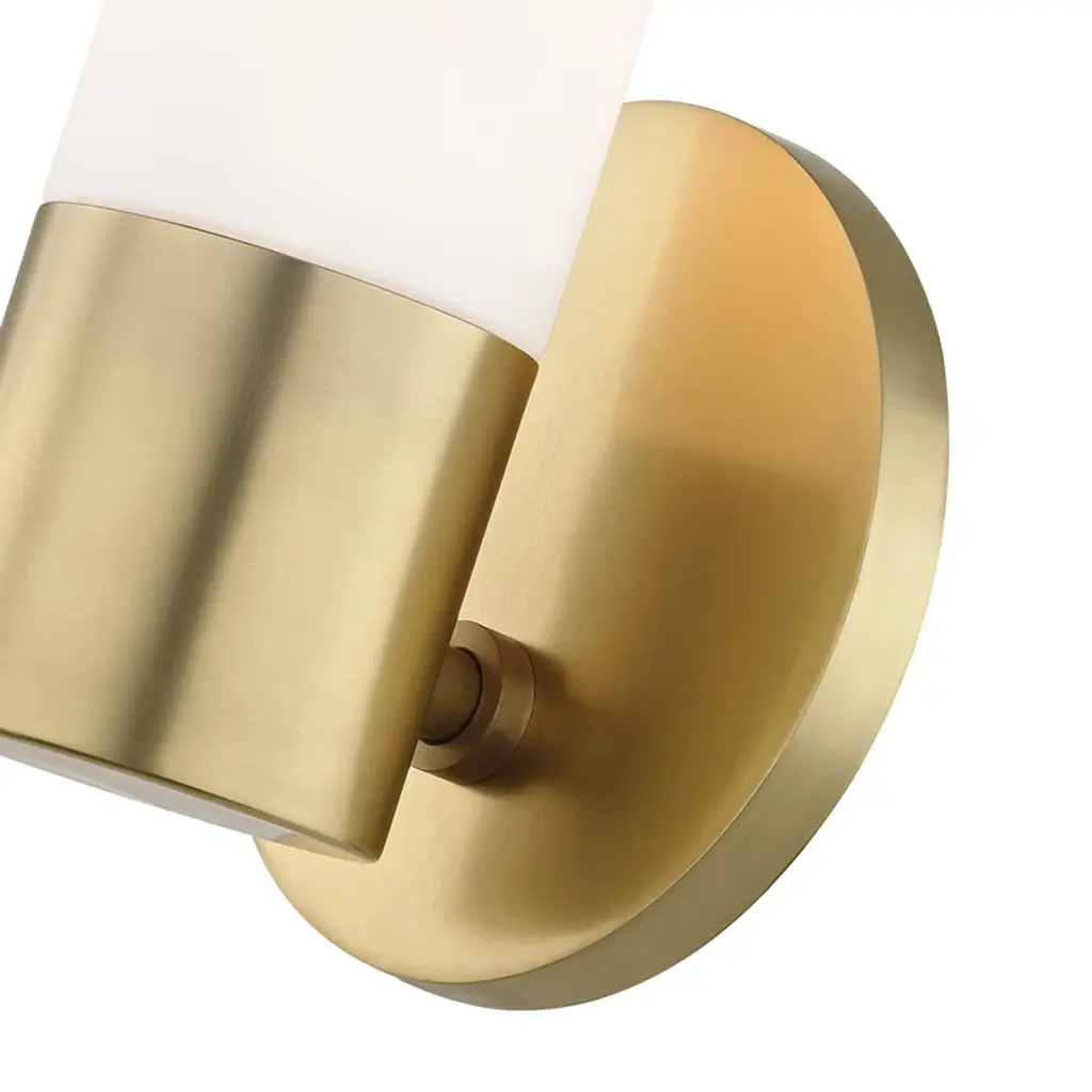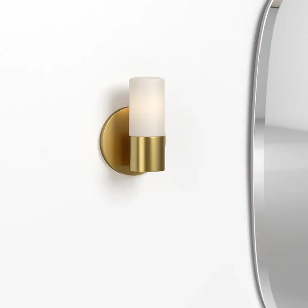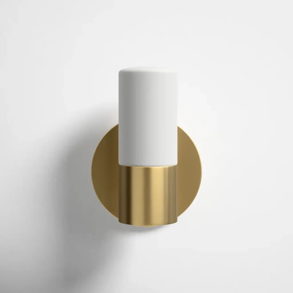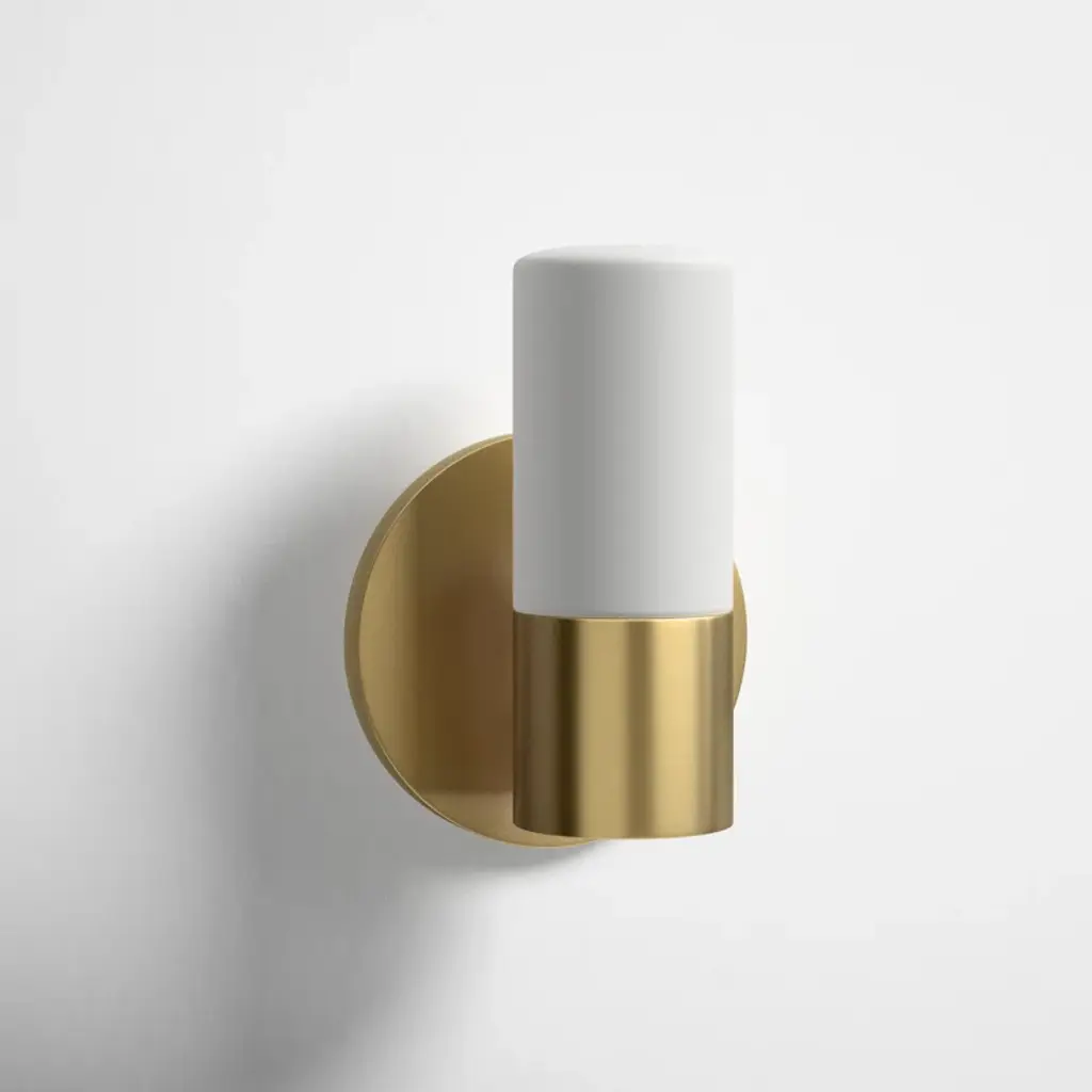 This sleek wall sconce features a pared-back design for a look with nods to mid-century style. Crafted from stainless steel, it features a circular backplate and single arm that supports the cylindrical fitting. A cylindrical shade crafted from opal matte glass sits at the top of the arm, and diffuses the light of the bulb ambiently throughout your space. This sconce is rated for damp spaces, so it's at home in bathrooms. This fixture features reversible mounting and accommodates 4W bulbs.