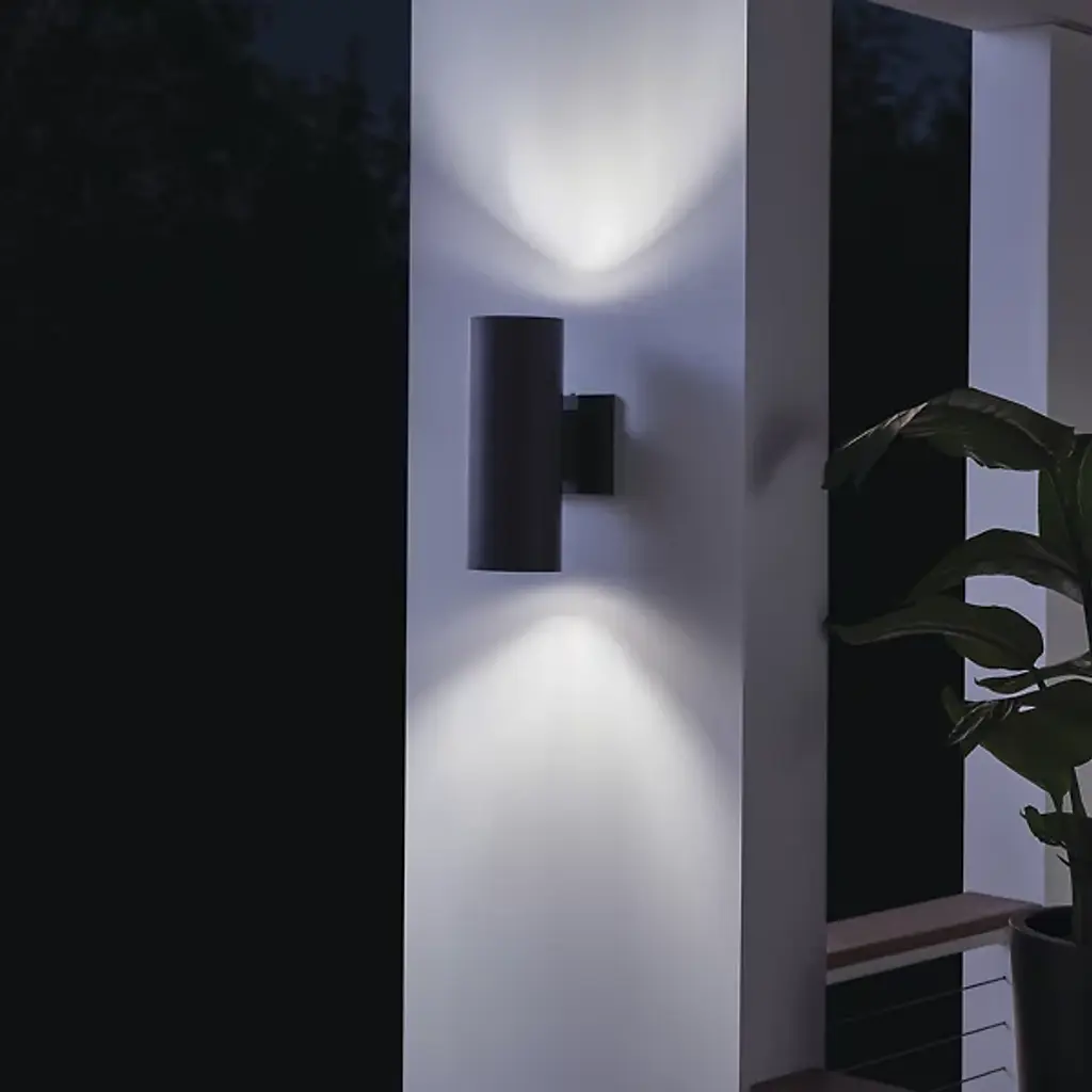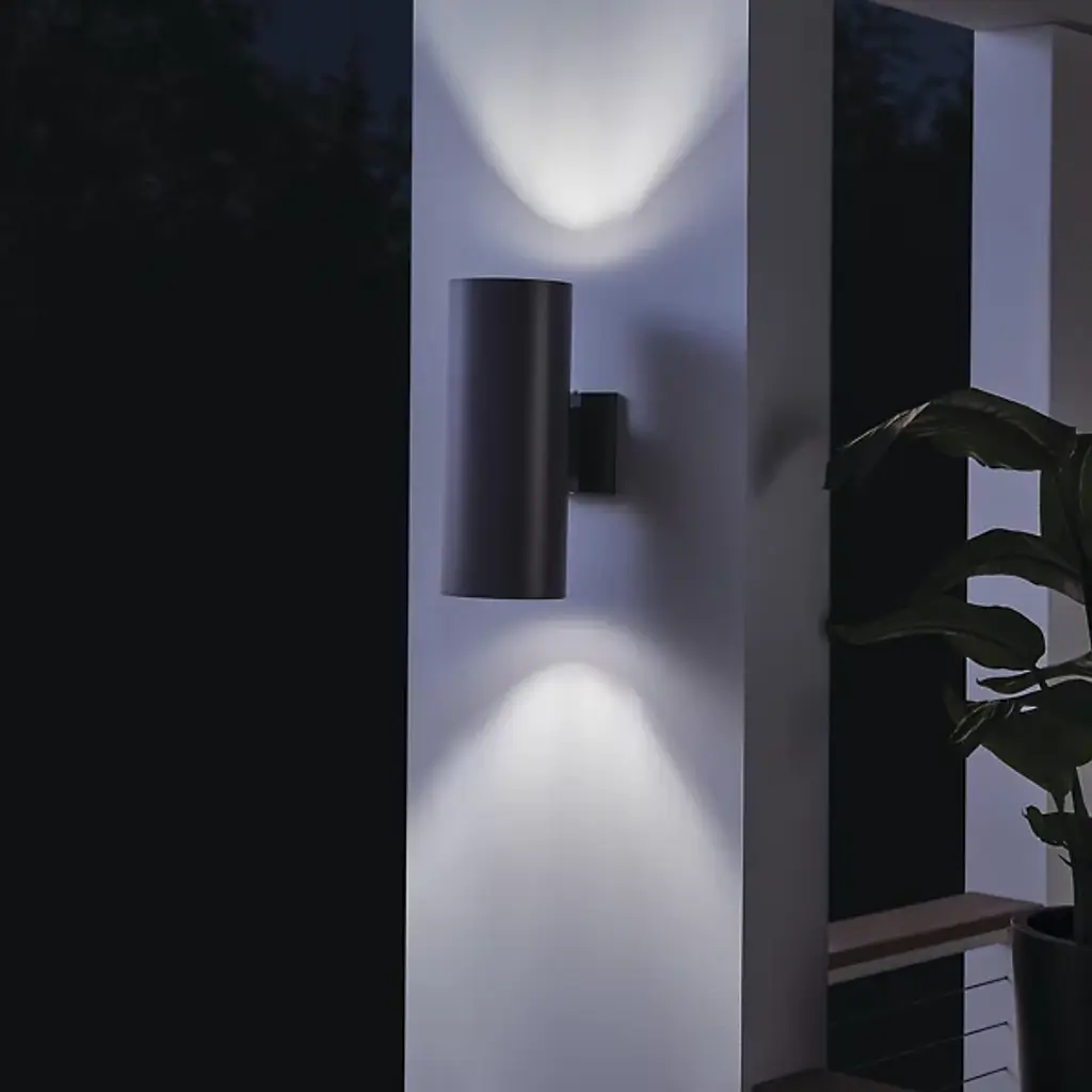 The Outdoor Up/Down Cylinder Wall Sconce from Kichler reflects modernist architectural principles that prioritize functional clarity over ornamentation. This cylindrical form channels light both upward and downward, creating balanced vertical illumination patterns that enhance building facades and outdoor spaces. The bidirectional approach draws from commercial applications adapted for residential use. Constructed from lightweight aluminum, the streamlined housing provides weather resistance while maintaining clean geometric lines that complement contemporary architectural environments and hardscape installations.