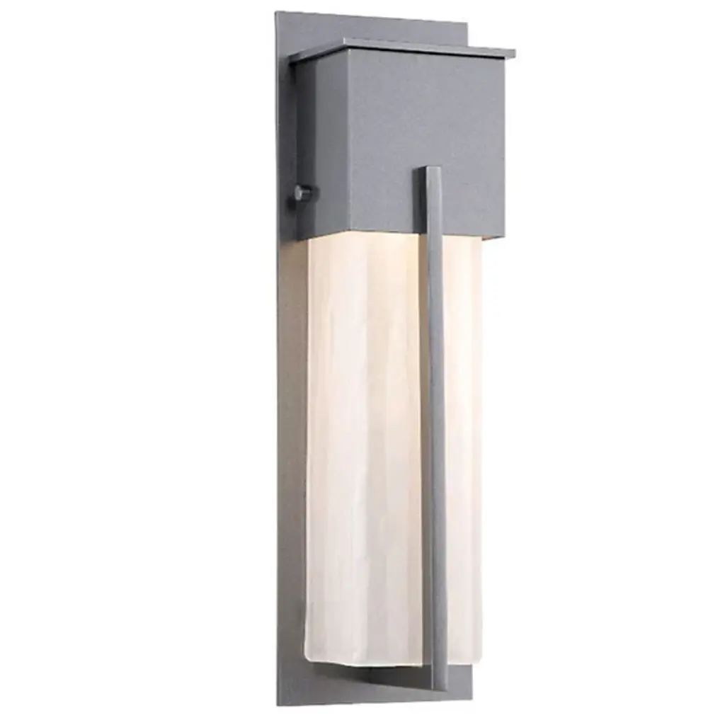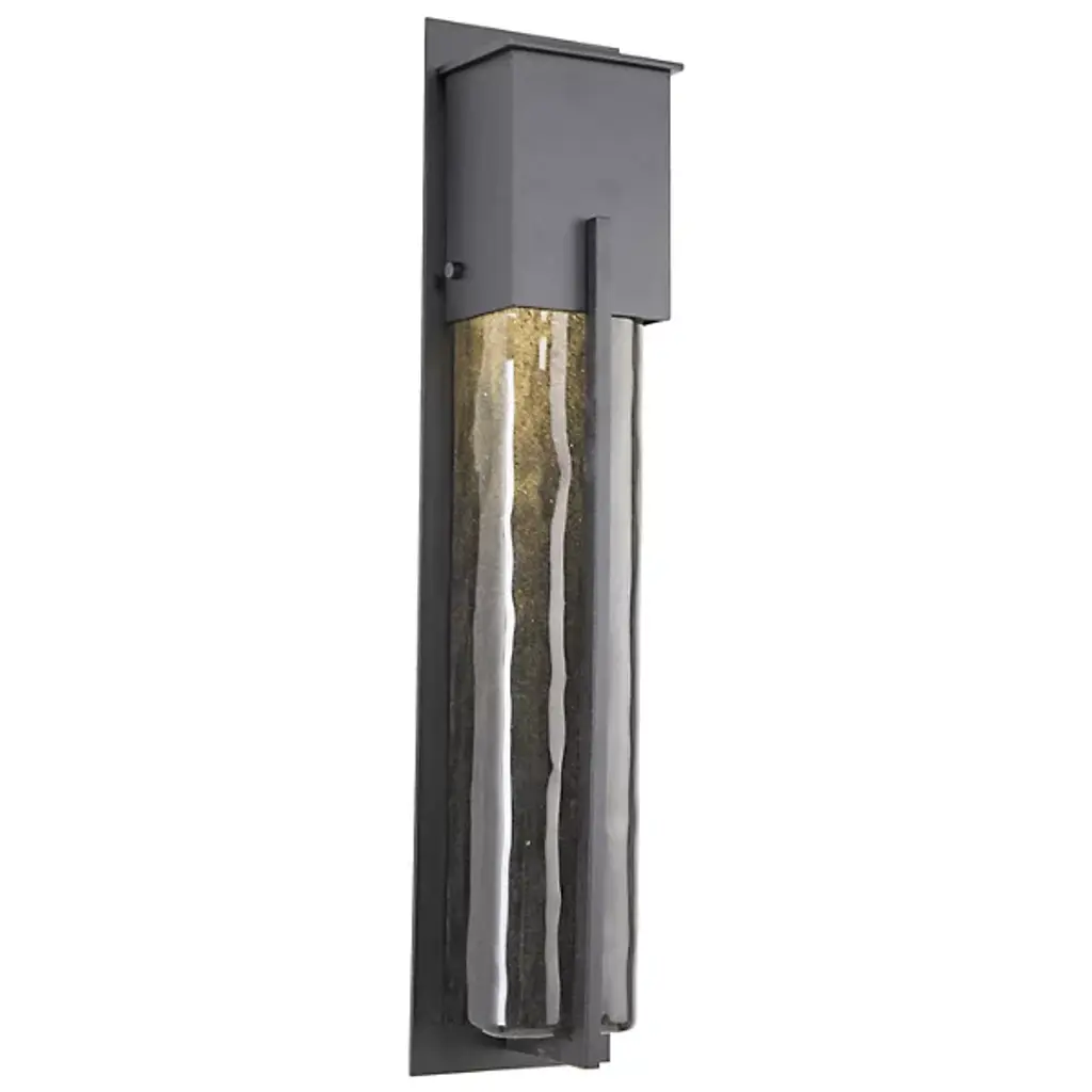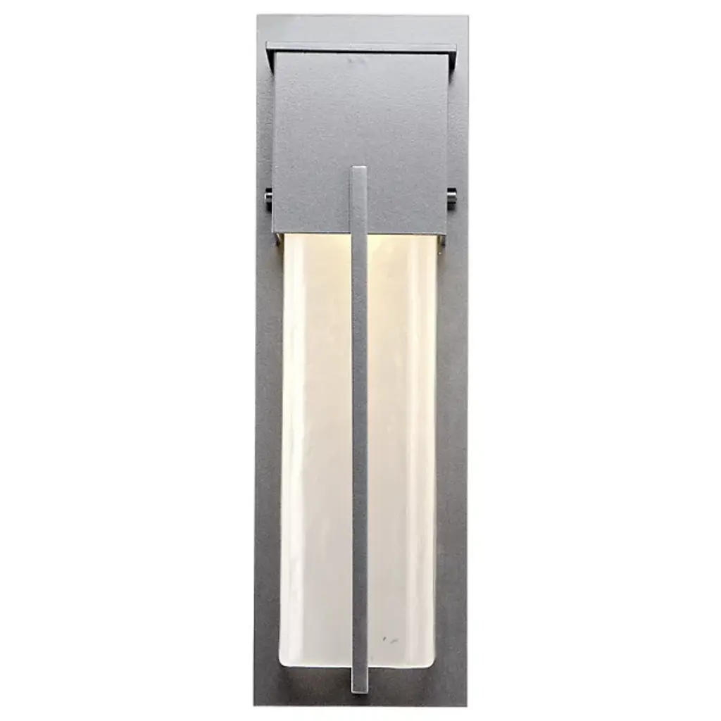 Light your way during dim mornings and dark nights with the tastefully-textured lines of the Outdoor Wall Sconce from Hammerton Studio. A metal rectangular wall mount set vertically holds out an angular housing from its upper end, set around wet-rated lamping, capped in turn with a rounded glass diffuser that’s been hand-textured and kiln-fused. The diffuser’s curved surfaces provide excellent visual contrast with the sharp-cornered metal frames, offering a more natural note to a fixture with a clean-surfaced sculptural style.